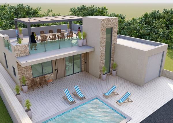 Die Außenbereiche dieser Häuser sind so gestaltet, dass sie das mediterrane Klima optimal nutzen. Jede Immobilie verfügt über einen privaten Garten, ideal für diejenigen, die gerne gärtnern oder einfach nur einen persönlichen grünen Raum wünschen. Die Terrassen bieten einen perfekten Ort zum Entspannen im Freien, während die Möglichkeit, einen privaten Pool hinzuzufügen, einen Hauch von Luxus und Exklusivität verleiht. Darüber hinaus bieten Pergolen Schatten und Komfort, sodass man auch an sonnigen Tagen die Außenbereiche genießen kann. Die Möglichkeit eines Solariums in einigen Typologien bietet zusätzlichen Raum für Freizeit und Erholung und nutzt die Aussicht und die natürliche Umgebung optimal aus.
