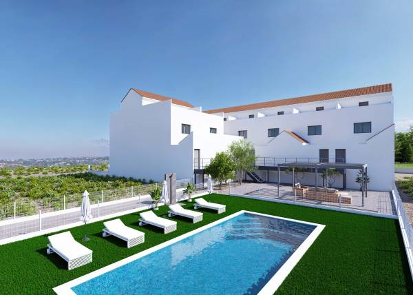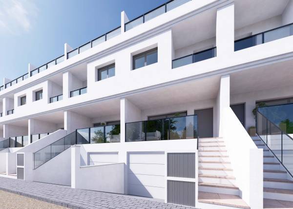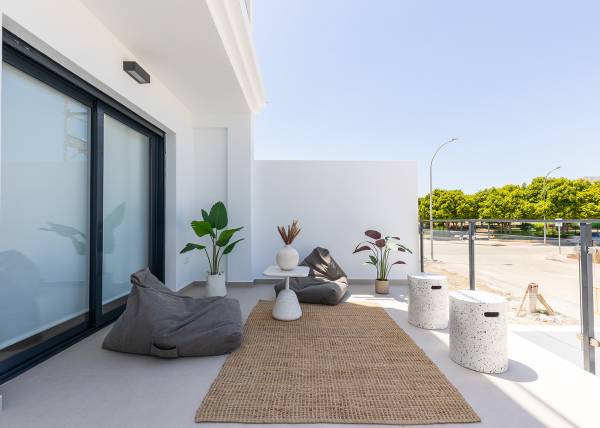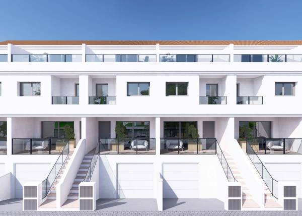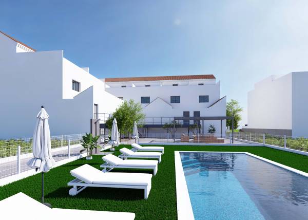 Die Außenbereiche dieser Reihenhäuser in Rafal wurden so gestaltet, dass sie einen Außenwohnraum bieten, der das Innere der Häuser ergänzt. Jede Immobilie verfügt über eine private Terrasse, ideal zum Entspannen oder für Familienfeiern im Freien. Darüber hinaus verfügen die Häuser über eine Garage, die Komfort und Sicherheit für das Parken von Fahrzeugen bietet. Das Außendesign fügt sich harmonisch in die Umgebung ein und bietet einen attraktiven und funktionalen Raum, der dazu einlädt, das mediterrane Klima das ganze Jahr über zu genießen. Die gemeinschaftlichen Gartenanlagen verleihen dem Komplex einen Hauch von Grün und Frische und schaffen eine ruhige und angenehme Umgebung für alle Bewohner.