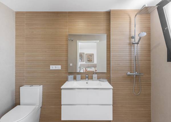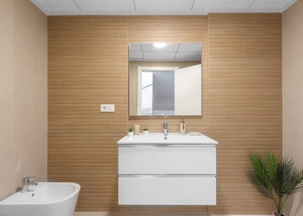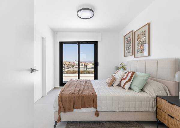 Das Innere der Reihenhäuser in Rafal ist so gestaltet, dass es Komfort und Modernität bietet. Die Böden aus Feinsteinzeug verleihen einen eleganten Touch und sind pflegeleicht, während die elektrischen Rollläden Komfort und Energieeffizienz bieten. Die Einbauschränke in den Schlafzimmern bieten reichlich Stauraum und halten die Ruhebereiche ordentlich und frei von Unordnung. Die Vorinstallation der Klimaanlage stellt sicher, dass die Häuser für die Installation von Klimaanlagen vorbereitet sind, sodass die Bewohner in den wärmeren Monaten eine kühle und komfortable Umgebung genießen können. Die Aufteilung der Häuser, mit Optionen für 3 und 4 Schlafzimmer und 2 Bäder, ist darauf ausgelegt, einen funktionalen Raum zu bieten, der an die Bedürfnisse jeder Familie anpassbar ist.