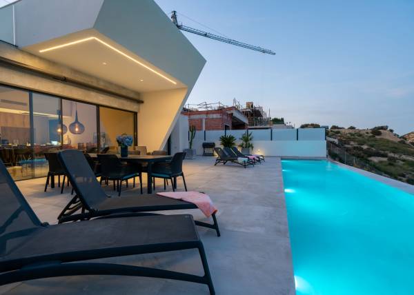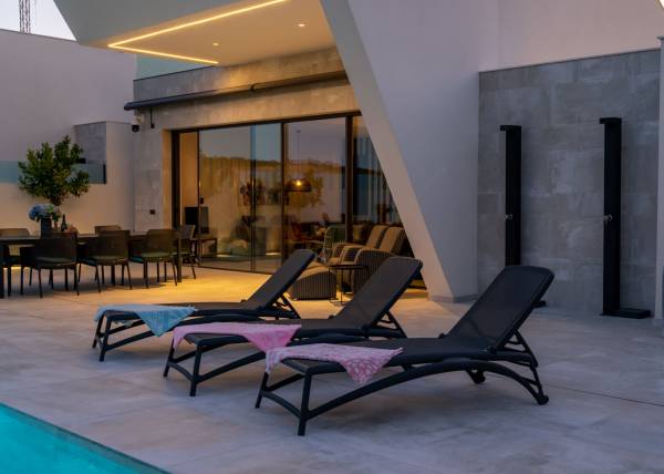Das Außendesign dieser Villen in Rojales ist darauf ausgelegt, die natürliche Schönheit der Umgebung mit modernem Komfort zu integrieren. Jede Villa verfügt über einen privaten Garten, ideal, um das mediterrane Klima zu genießen. Die großzügigen Terrassen bieten zusätzlichen Außenbereich, ideal zum Entspannen oder um Gäste zu unterhalten, während man den Meerblick genießt. Darüber hinaus beinhalten die Immobilien ein Solarium, das einen erhöhten Ort bietet, um die umliegende Landschaft noch mehr zu schätzen. Die Nähe zum Meer, nur 4,6 km entfernt, ermöglicht es, die Meeresbrise und Küstenspaziergänge jederzeit zu genießen.