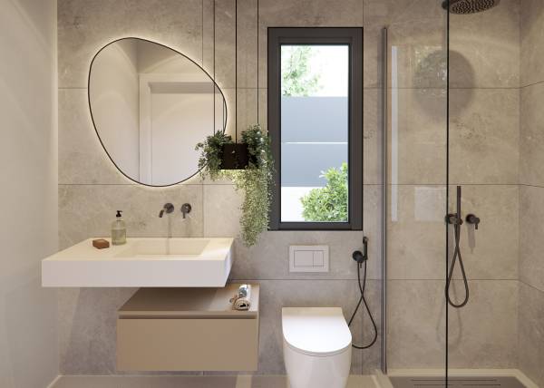 Das Innere der Häuser ist so gestaltet, dass es maximalen Komfort und Funktionalität bietet. Mit drei Schlafzimmern und zwei Bädern ist jeder Raum für den täglichen Gebrauch optimiert. Einbauschränke bieten effizienten Stauraum, während elektrische Rollläden und eine Video-Gegensprechanlage zusätzlichen Komfort und Sicherheit bieten. Die Keramik- und Fliesenböden sind nicht nur ästhetisch ansprechend, sondern auch pflegeleicht. Darüber hinaus sind die Häuser mit einer Vorinstallation für Klimaanlagen ausgestattet, die das ganze Jahr über ein angenehmes Ambiente gewährleisten. Die private Garage ist eine praktische Ergänzung und bietet einen sicheren Parkplatz.