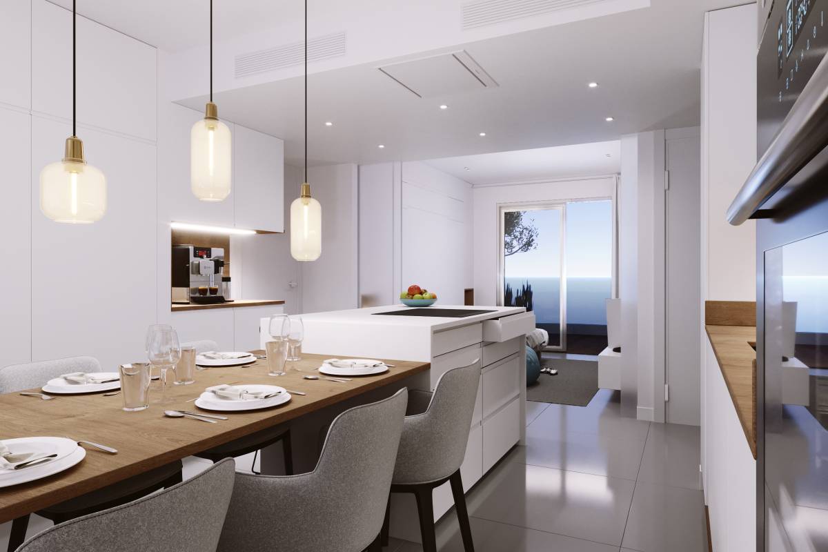 Die Außenbereiche dieses Wohnresorts sind so gestaltet, dass sie das Naturerlebnis maximieren. Jede Immobilie verfügt über einen privaten Garten, ideal zum Entspannen im Freien. Die großzügigen Terrassen bieten zusätzlichen Raum, um den Meerblick und das mediterrane Klima zu genießen. Darüber hinaus beinhalten einige Typologien ein Solarium, das einen exklusiven Bereich zum Sonnenbaden oder für ruhige Momente bietet. Die Lage in erster Reihe am Strand stellt sicher, dass die Bewohner die Meeresbrise und den ununterbrochenen Blick auf den Horizont genießen können.