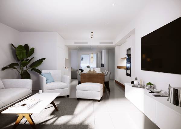 Das Innere der Immobilien ist sorgfältig gestaltet, um Komfort und Funktionalität zu bieten. Die verfügbaren Apartments, Erdgeschosse und Penthäuser bieten Optionen mit 2 oder 3 Schlafzimmern, alle mit Einbauschränken, die den Stauraum optimieren. Die Bäder, alle mit 2 Einheiten pro Immobilie, sind ausgestattet, um den täglichen Bedarf komfortabel zu decken. Der Keramikboden verleiht einen modernen Touch und ist pflegeleicht. Darüber hinaus beinhalten einige Immobilien einen privaten Whirlpool, der einen persönlichen Entspannungsbereich im Haus bietet.