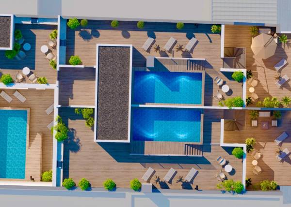 Die Außenbereiche dieser Immobilien in Torrevieja sind darauf ausgelegt, eine entspannende und luxuriöse Atmosphäre zu bieten. Jede Einheit verfügt über eine private Terrasse, ideal, um das mediterrane Klima und den Meerblick zu genießen. Darüber hinaus beinhalten einige Immobilien ein privates Solarium, perfekt, um in völliger Privatsphäre Sonne zu tanken. Die Option eines privaten Pools fügt einen Hauch von Exklusivität hinzu und ermöglicht es, sich im Komfort des eigenen Zuhauses zu erfrischen. Die Gemeinschaftsgärten ergänzen die Umgebung und bieten einen grünen Raum zum Spazierengehen oder Entspannen im Freien.