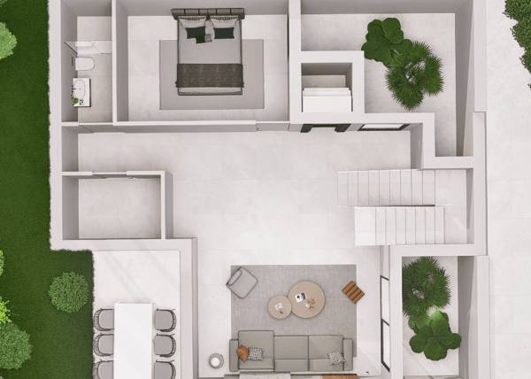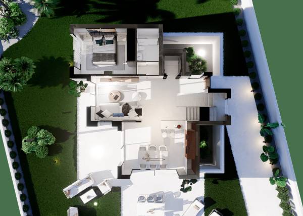 Die Außenbereiche dieser Häuser in Finestrat sind darauf ausgelegt, einen außergewöhnlichen Lebensstil im Freien zu bieten. Jede Immobilie verfügt über einen privaten Garten, ideal, um ruhige Momente zu genießen oder Outdoor-Treffen zu organisieren. Die Terrasse ist perfekt, um sich zu entspannen und den Horizont zu betrachten. Darüber hinaus verfügt jedes Haus über ein Solarium, einen exklusiven Raum, um die Sonne in völliger Privatsphäre zu genießen. Das Vorhandensein eines privaten Pools verleiht einen Hauch von Luxus und ermöglicht es, sich an den heißesten Tagen abzukühlen. Der Garten und der Pool fügen sich harmonisch in die Umgebung ein und schaffen eine persönliche Oase.