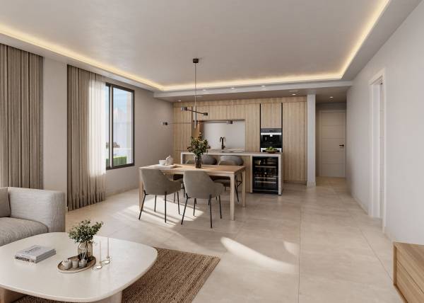 Das Innere der Wohnungen in diesem Wohnkomplex in La Sella ist sorgfältig gestaltet, um maximalen Komfort und Funktionalität zu bieten. Die Grundrissoptionen umfassen Wohnungen mit 2 und 3 Schlafzimmern, alle mit 2 Bädern, was sie ideal für Familien und Paare macht. Hochwertige Ausstattungen wie Feinsteinzeugböden verleihen einen Hauch von Modernität und Eleganz. Die modernen Geräte sorgen dafür, dass jedes Zuhause vom ersten Tag an bezugsfertig ist. Einbauschränke bieten effizienten Stauraum und halten die Räume ordentlich und frei von Unordnung. Darüber hinaus verfügt jede Wohnung über eine Garage, die Komfort und Sicherheit für die Fahrzeuge der Bewohner bietet.