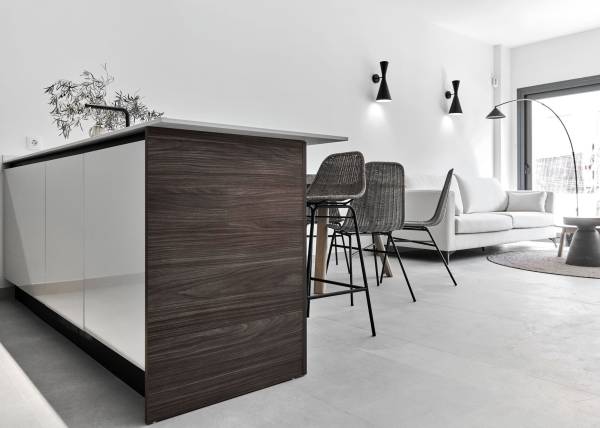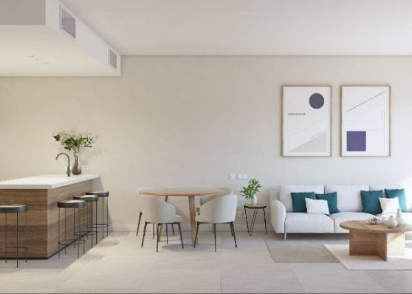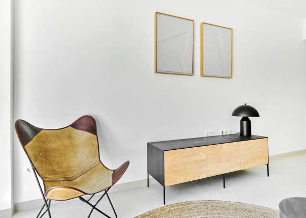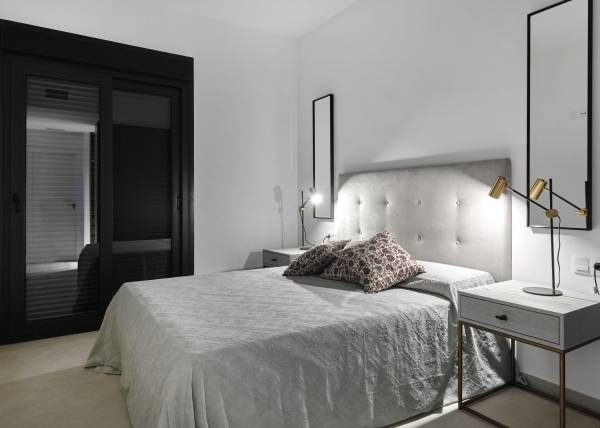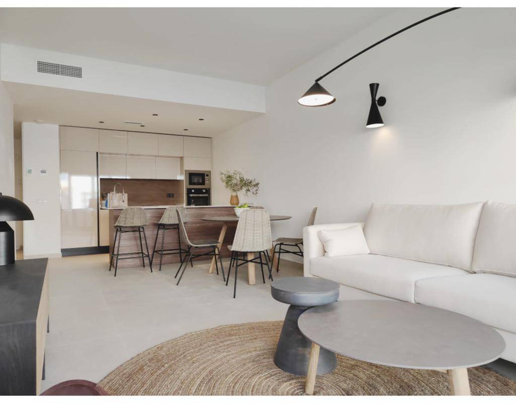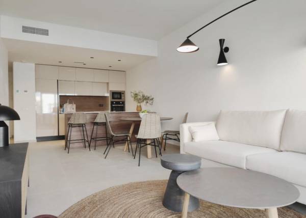 Die Außenbereiche der Wohnungen sind so gestaltet, dass sie das mediterrane Klima optimal nutzen. Jeder Bungalow verfügt über einen privaten Garten, ideal, um einen persönlichen grünen Raum zu schaffen oder um Momente im Freien zu genießen. Die großzügigen Terrassen bieten einen idealen Ort zum Entspannen, Sonnenbaden oder für Mahlzeiten im Freien mit Familie und Freunden. Darüber hinaus ermöglichen die in einigen Typologien verfügbaren Solariums, den ganzen Tag über Panoramablicke und Sonne zu genießen. Die Nähe zum Meer, nur 600 Meter entfernt, fügt einen zusätzlichen Reiz hinzu und ermöglicht es, den Strand jederzeit zu genießen.