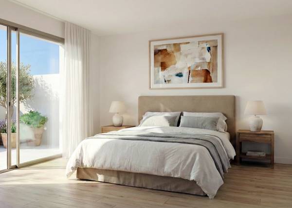 Das Innere der Bungalows ist mit einem Fokus auf Funktionalität und Komfort gestaltet. Die Wohnungen bieten Optionen mit 2 oder 3 Schlafzimmern, um sich an unterschiedliche Familiengrößen oder Platzbedürfnisse anzupassen. Jeder Bungalow verfügt über 2 Badezimmer, um den Komfort für alle Bewohner zu gewährleisten. Eingebaute Schränke sind ein Standardmerkmal, das effizienten Stauraum bietet und die Räume ordentlich hält. Die Vorinstallation der Klimaanlage stellt sicher, dass das Zuhause das ganze Jahr über eine angenehme Temperatur beibehält. Die enthaltenen Elektrogeräte erleichtern den Alltag, während der Boden aus Feinsteinzeug den Räumen einen Hauch von Eleganz und Haltbarkeit verleiht.