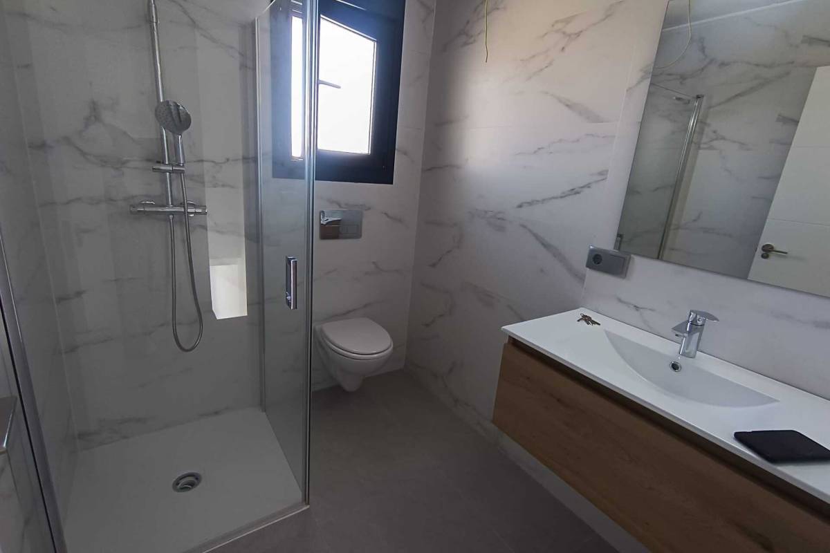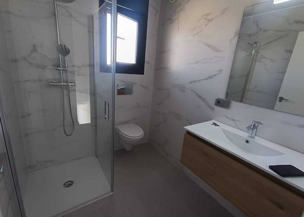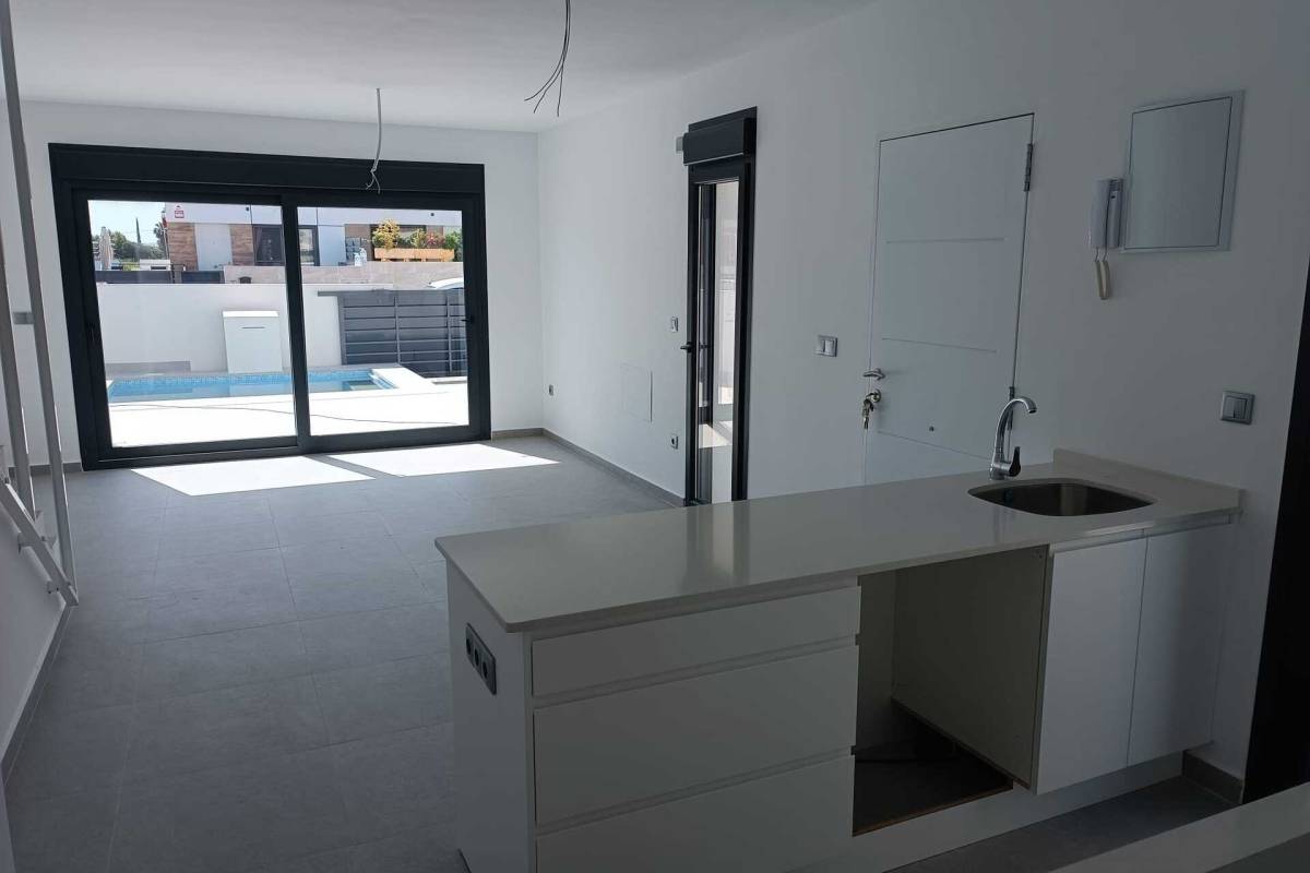 Das Innere dieser unabhängigen Häuser in Daya Nueva ist sorgfältig gestaltet, um Komfort und Stil zu bieten. Die Böden aus Feinsteinzeug verleihen einen modernen Touch und sind pflegeleicht, was ideal für einen aktiven Lebensstil ist. Einbauschränke in den Schlafzimmern bieten effizienten Stauraum und helfen, die Räume ordentlich und frei von Unordnung zu halten. Mit drei Schlafzimmern und zwei Bädern sind diese Häuser bereit, die Bedürfnisse von Familien oder Paaren zu erfüllen, die ein geräumiges und gut aufgeteiltes Zuhause suchen. Die Einbeziehung einer Terrasse ermöglicht einen fließenden Übergang zwischen Innen- und Außenbereichen und erweitert die Nutzungsmöglichkeiten des Hauses.