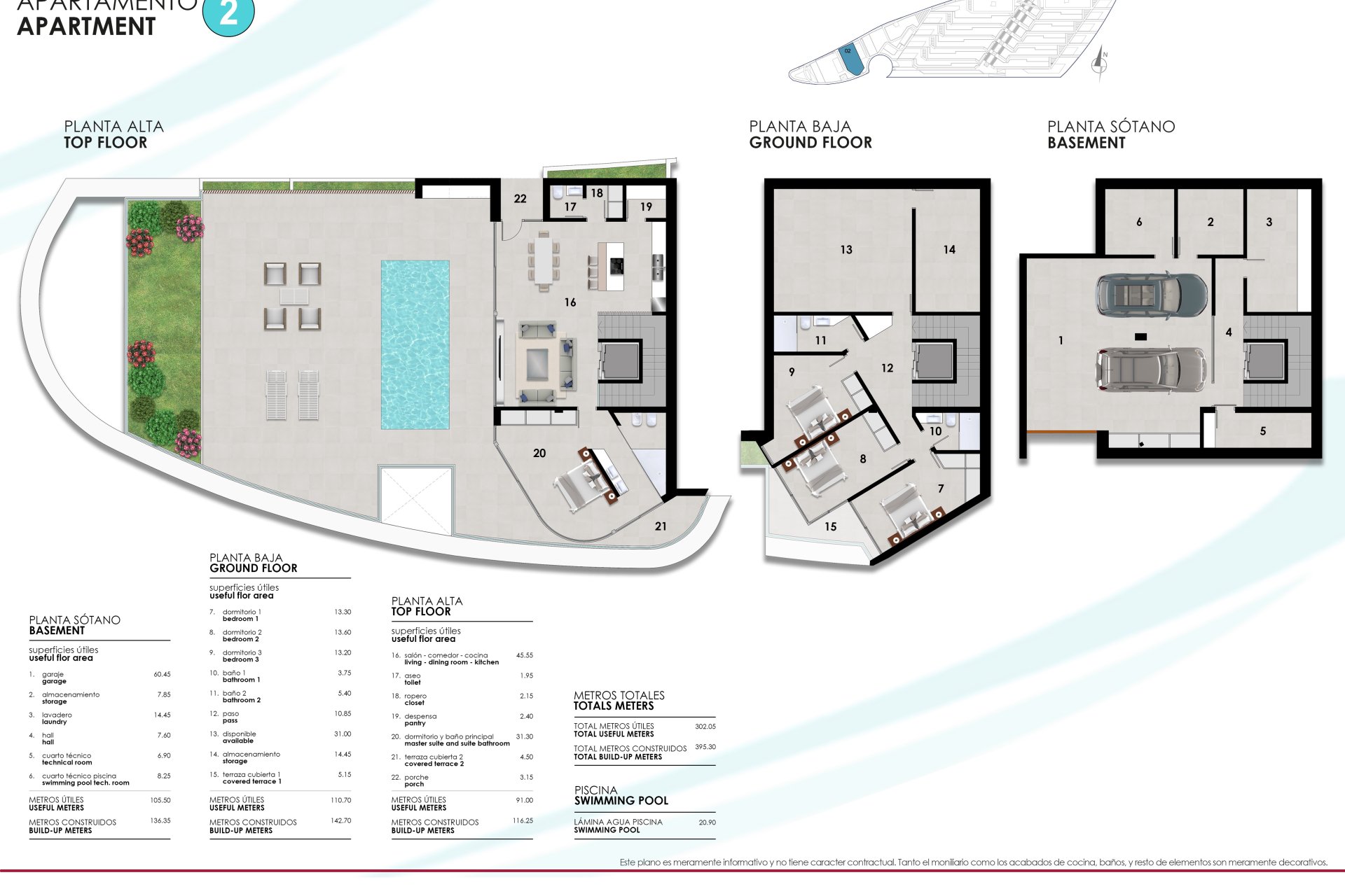 Das Außendesign der Villen in Pueblo Mascarat ist darauf ausgelegt, die natürliche Umgebung optimal zu nutzen. Jede Villa verfügt über einen privaten Garten, perfekt, um die frische Luft in einer intimen Atmosphäre zu genießen. Die großzügigen Terrassen bieten einen idealen Raum zum Entspannen oder um Gäste zu unterhalten, während man den Meerblick genießt. Darüber hinaus verfügt jede Immobilie über einen privaten Pool, der eine persönliche Oase zur Abkühlung an heißen Tagen bietet. Die Einbeziehung einer privaten Garage sorgt für Komfort und Sicherheit für die Fahrzeuge.