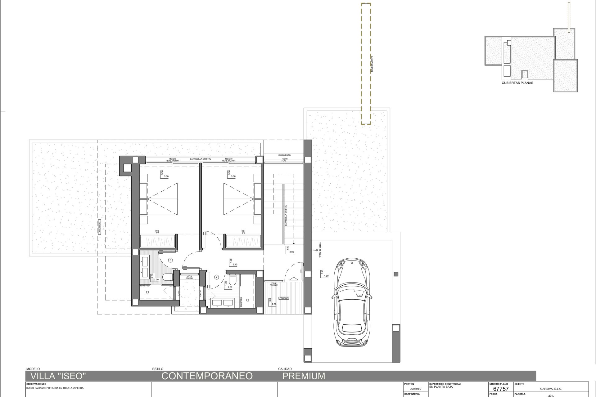 Das Innere der Villa ist sorgfältig gestaltet, um Komfort und Funktionalität zu bieten. Es verfügt über drei Schlafzimmer und vier Badezimmer, was Raum und Privatsphäre für die ganze Familie gewährleistet. Die Villa wird möbliert und mit Geräten ausgestattet geliefert, was einen unkomplizierten Umzug ermöglicht. Elektrische Rollläden und die Video-Gegensprechanlage verleihen einen modernen und sicheren Touch. Einbauschränke und die Vorinstallation der Klimaanlage sorgen für Komfort und Organisation.