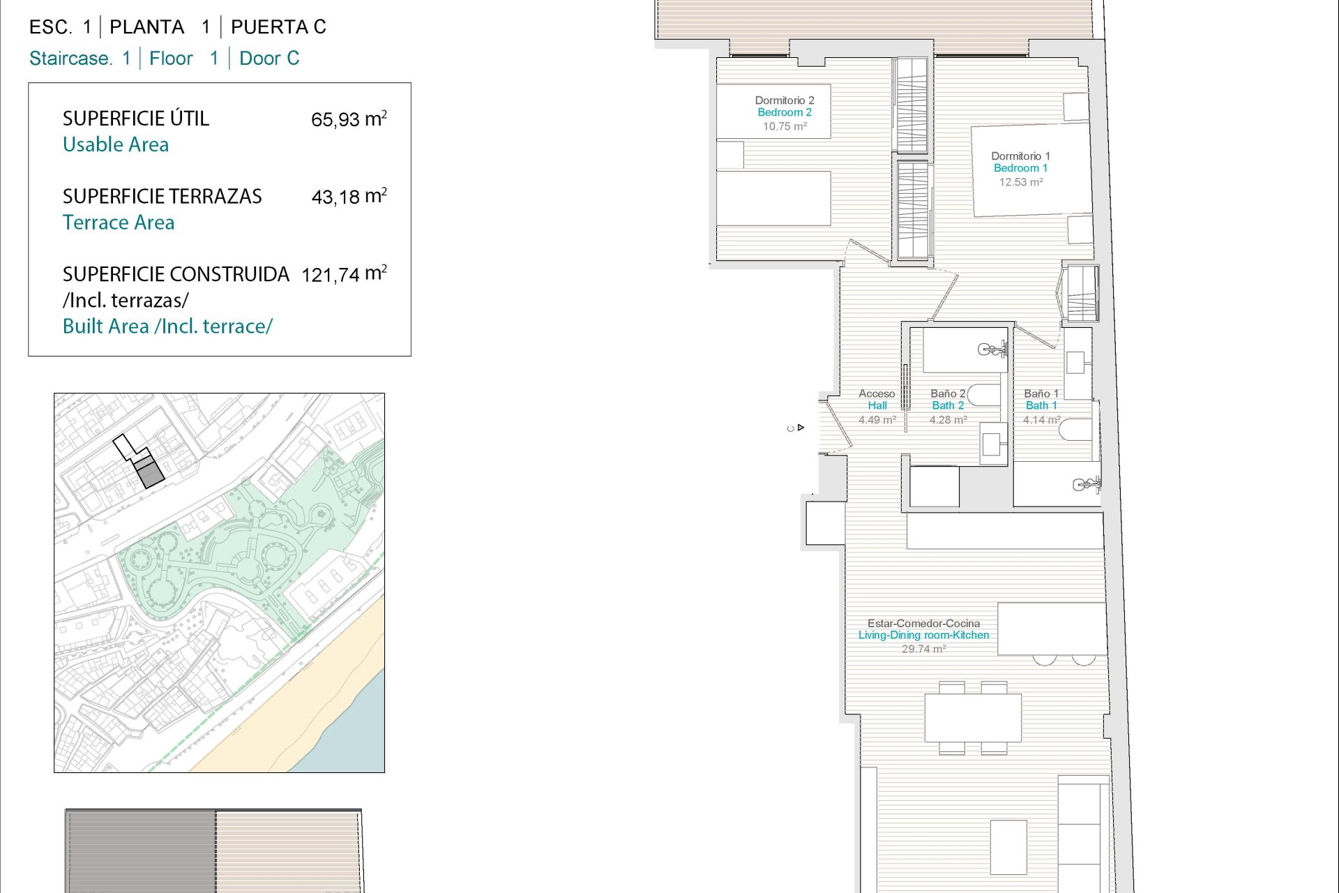 Die Außenbereiche dieses Wohnkomplexes in La Vila Joiosa sind so gestaltet, dass sie das natürliche Umfeld und den Meerblick maximieren. Jede Immobilie verfügt über eine private Terrasse, ideal zum Entspannen und Genießen des mediterranen Klimas. Die Nähe zum Meer, nur 150 Meter entfernt, ermöglicht es den Bewohnern, morgendliche Spaziergänge am Strand zu genießen oder Wassersportaktivitäten nachzugehen. Darüber hinaus sorgt das architektonische Design der Wohnungen dafür, dass jede einen Zugang zu Panoramablicken hat, was eine Atmosphäre der Ruhe und natürlichen Schönheit schafft. Die in den Außenbereichen verwendeten Materialien, wie Feinsteinzeug, sind nicht nur ästhetisch ansprechend, sondern auch langlebig und pflegeleicht, was garantiert, dass die Außenbereiche das ganze Jahr über in perfektem Zustand bleiben.