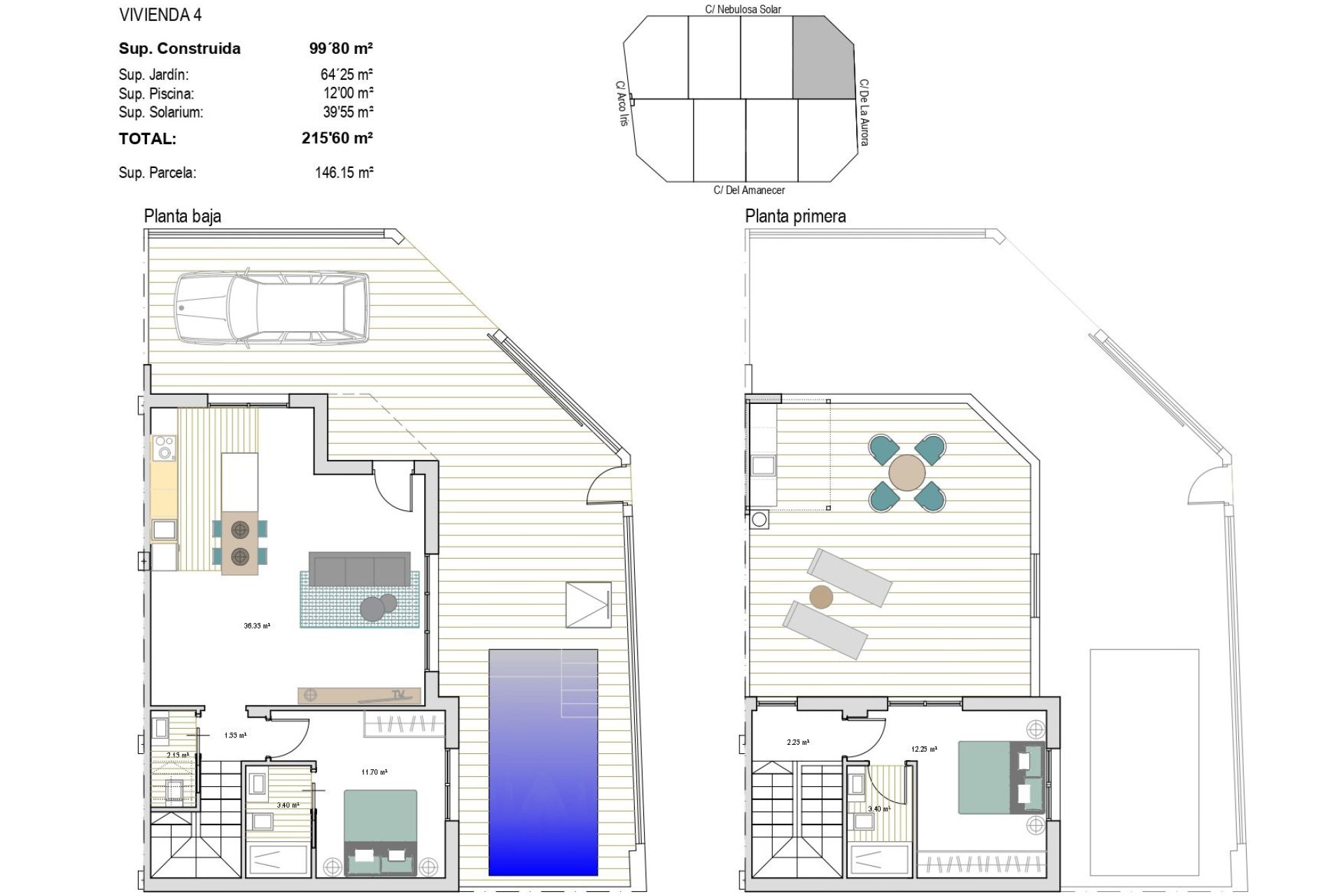 Das Außendesign der Reihenhäuser in Roldán umfasst einen privaten Garten, ideal, um das mediterrane Klima zu genießen und Outdoor-Treffen zu veranstalten. Darüber hinaus verfügt jede Immobilie über eine Terrasse, die zusätzlichen Raum für Freizeit und Entspannung bietet. Für diejenigen, die die Sonne genießen, ist das Solarium ein perfekter Ort zum Entspannen und um die Aussicht zu genießen. Die Einbeziehung eines privaten Pools in jedem Reihenhaus verleiht einen Hauch von Luxus und Exklusivität, sodass die Bewohner ein erfrischendes Bad in der Privatsphäre ihres Zuhauses genießen können.