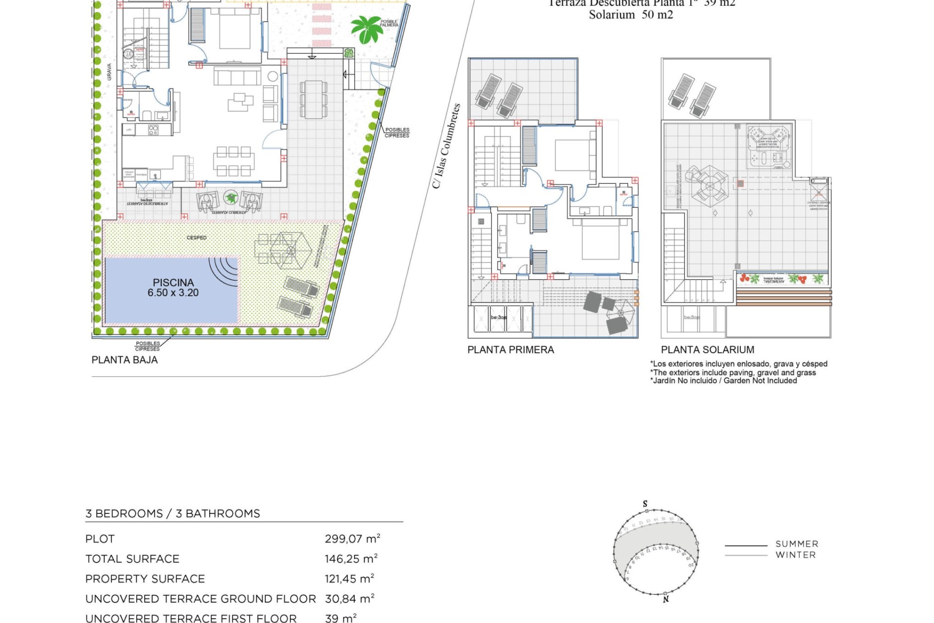 Das Innere dieser unabhängigen Häuser ist sorgfältig gestaltet, um Komfort und Funktionalität zu bieten. Mit insgesamt 3 Schlafzimmern und 3 Bädern ist jeder Raum darauf ausgelegt, die Bedürfnisse der Bewohner zu erfüllen. Die Böden aus Feinsteinzeug verleihen einen modernen und eleganten Touch, während die Einbauschränke den Stauraum optimieren. Die Aufteilung umfasst eine Garage, die Komfort und Sicherheit beim Parken bietet. Jedes Detail ist darauf ausgelegt, ein gemütliches und praktisches Zuhause zu bieten.