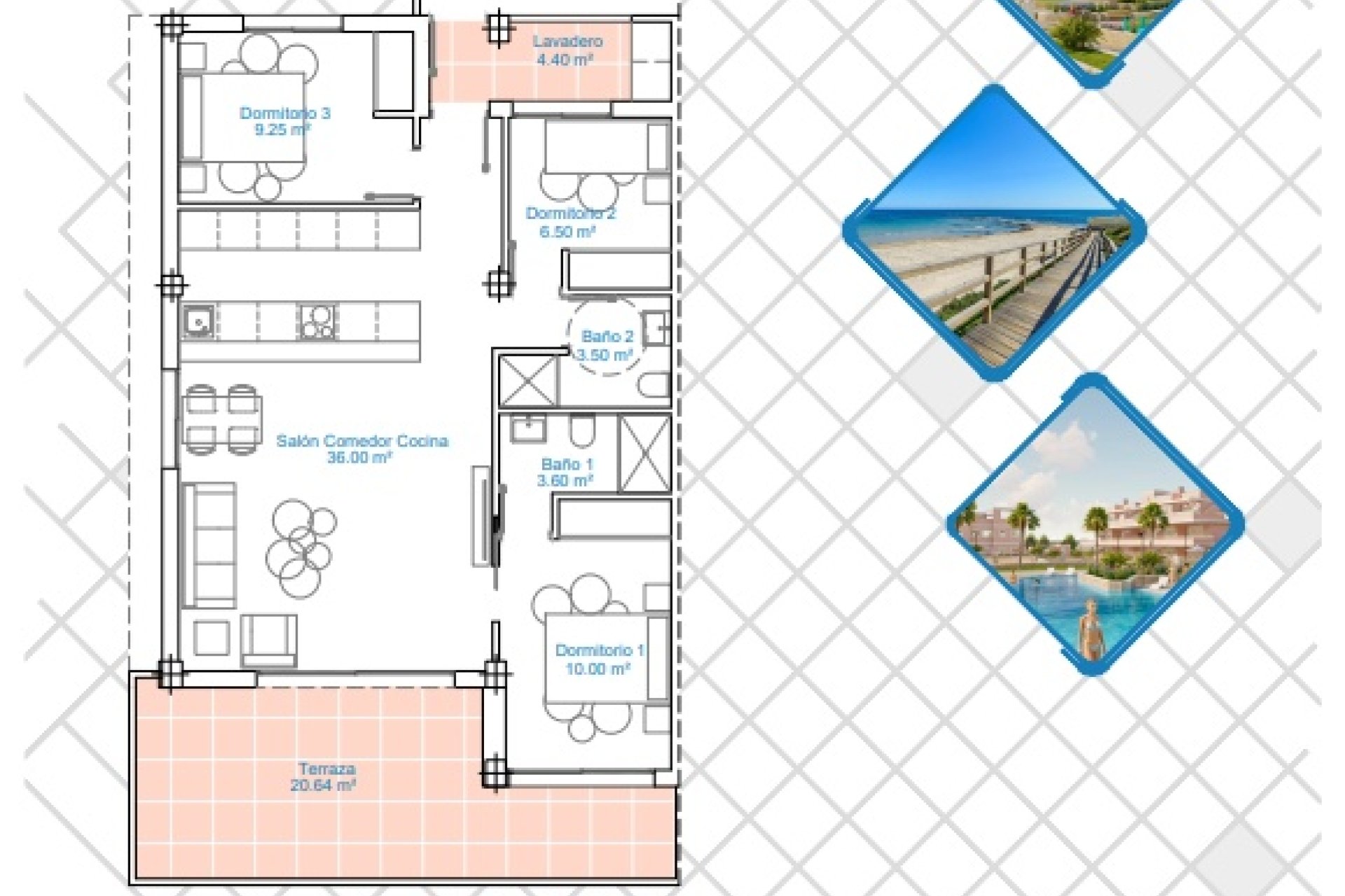 Im charmanten Ort Pilar de la Horadada gelegen, bietet diese Wohnanlage eine Vielzahl von Wohnmöglichkeiten, die unterschiedlichen Bedürfnissen gerecht werden. Mit insgesamt 24 Immobilien können zukünftige Bewohner zwischen Apartments, Erdgeschossen, Bungalows mit Solarium und Bungalows mit Garten wählen. Diese typologische Vielfalt stellt sicher, dass jede Familie oder Einzelperson ihr ideales Zuhause in einer Umgebung findet, die Ruhe und Zugänglichkeit vereint. Die Nähe zum Meer, nur 2 km entfernt, ermöglicht es, die Meeresbrise und angenehme Spaziergänge entlang der Küste zu genießen. Der nächstgelegene Flughafen ist 48 km entfernt, was internationale und nationale Reisen erleichtert. Die strategische Lage dieser Wohnanlage in Pilar de la Horadada macht sie zu einer attraktiven Option für diejenigen, die ein Gleichgewicht zwischen Komfort und Lebensqualität suchen.