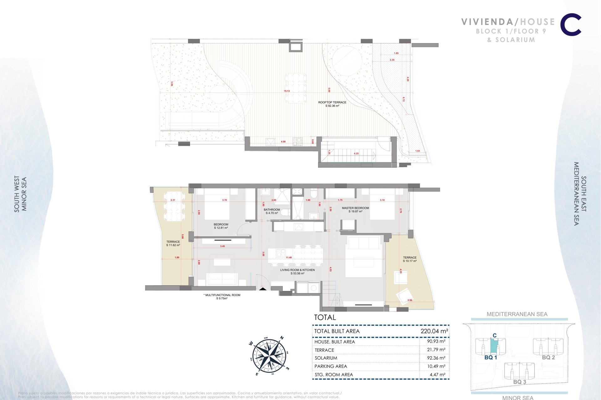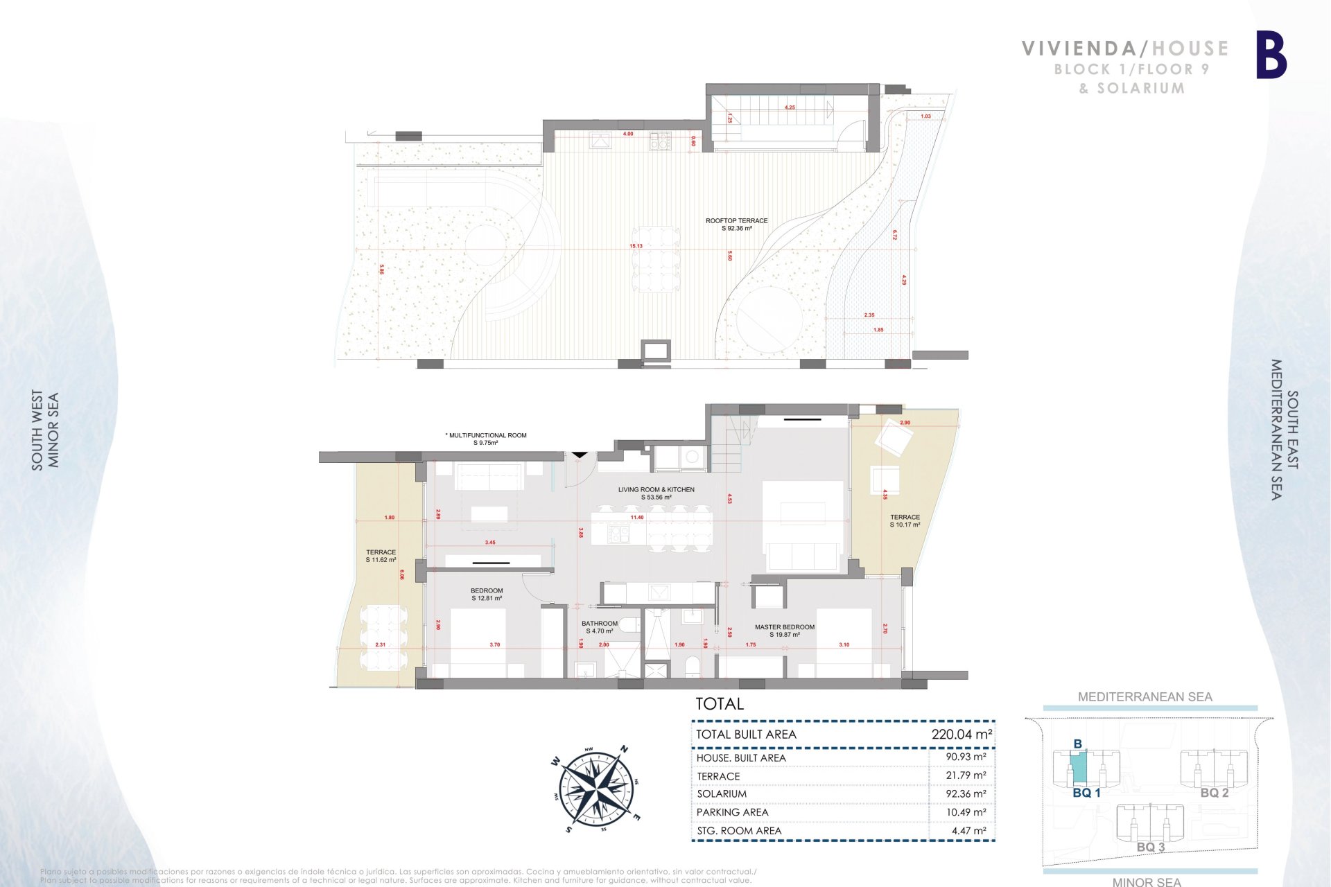Die Außenbereiche dieses Wohnresorts sind so gestaltet, dass sie das Naturerlebnis maximieren. Jede Immobilie verfügt über einen privaten Garten, ideal zum Entspannen im Freien. Die großzügigen Terrassen bieten zusätzlichen Raum, um den Meerblick und das mediterrane Klima zu genießen. Darüber hinaus beinhalten einige Typologien ein Solarium, das einen exklusiven Bereich zum Sonnenbaden oder für ruhige Momente bietet. Die Lage in erster Reihe am Strand stellt sicher, dass die Bewohner die Meeresbrise und den ununterbrochenen Blick auf den Horizont genießen können.
