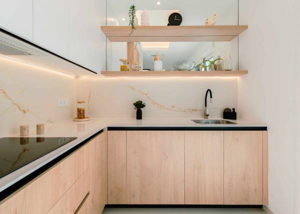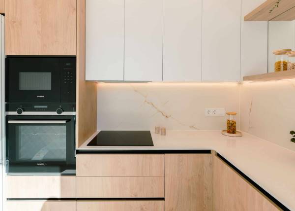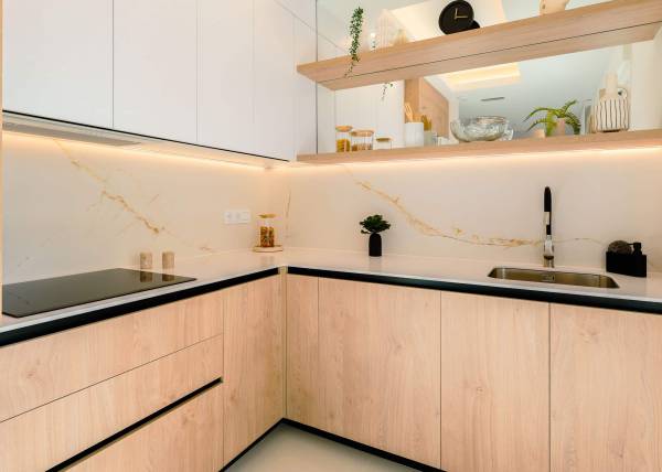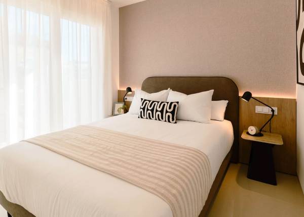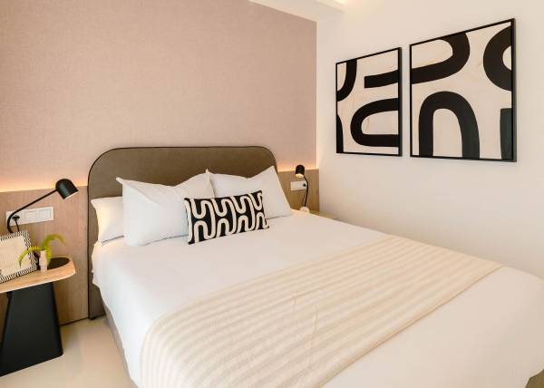 The exteriors of these homes have been designed to maximize enjoyment of the Mediterranean climate. Each property features a private garden, perfect for relaxing or enjoying outdoor activities. The presence of a private pool adds a touch of luxury, allowing for refreshing dips on the hottest days. Additionally, the homes have a terrace and a solarium, offering multiple spaces to relax or socialize outdoors. The inclusion of a pergola provides shade and style, creating a welcoming and elegant outdoor environment.