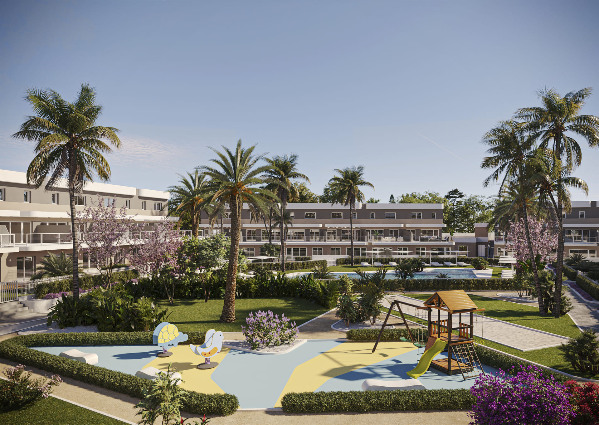 The common areas of this residential are designed to promote coexistence and enjoyment for all residents. The communal gardens offer a green space where neighbors can walk and enjoy the outdoors. The communal pool is an ideal meeting point to cool off during the warmer months, while the playground provides a safe and fun place for the little ones to play and socialize. Additionally, the residential features a communal garage and parking area, ensuring that all residents have access to a secure space for their vehicles. These features make this residential a comprehensive option for those seeking a home with all amenities.