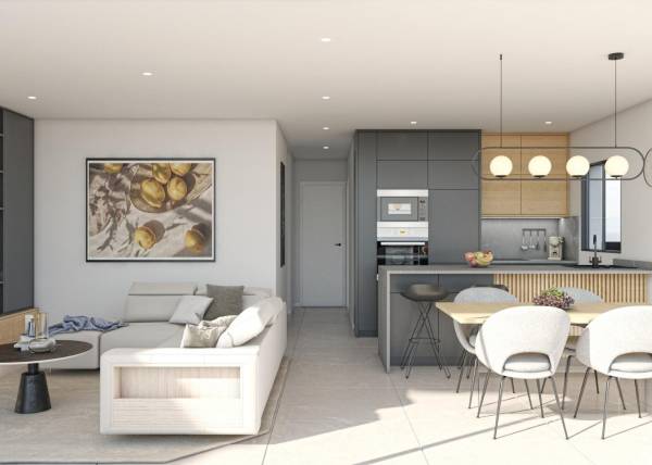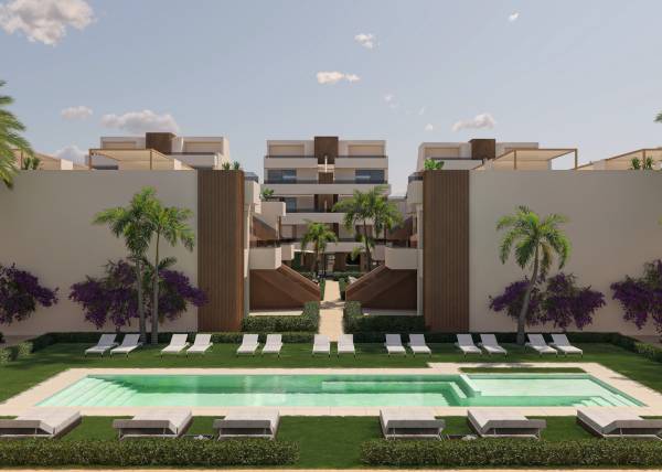 The exteriors of this residential have been designed to offer a space for relaxation and outdoor enjoyment. Each bungalow features a private garden, ideal for those who enjoy gardening or simply desire a personal green space. Additionally, the spacious terraces provide a perfect spot to enjoy the Mediterranean climate, whether for outdoor breakfasts or relaxing at the end of the day. For those seeking additional outdoor space, the solariums offer unobstructed views and are perfect for sunbathing or enjoying a starry night. The community also features common landscaped areas, which not only beautify the environment but also offer additional space for recreation and socialization among neighbors.