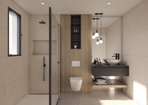 The interior of each bungalow has been carefully designed to maximize comfort and functionality. The homes are equipped with built-in wardrobes, providing ample storage space without compromising interior design. The pre-installation of air conditioning ensures that each home can easily adapt to the climate preferences of its residents. The kitchens, fully equipped with modern appliances, facilitate daily life and allow for enjoying cooking as a pleasant experience. The layout of the homes, with 2 or 3 bedrooms and 2 bathrooms, is designed to offer privacy and comfort, adapting to the needs of families of different sizes.