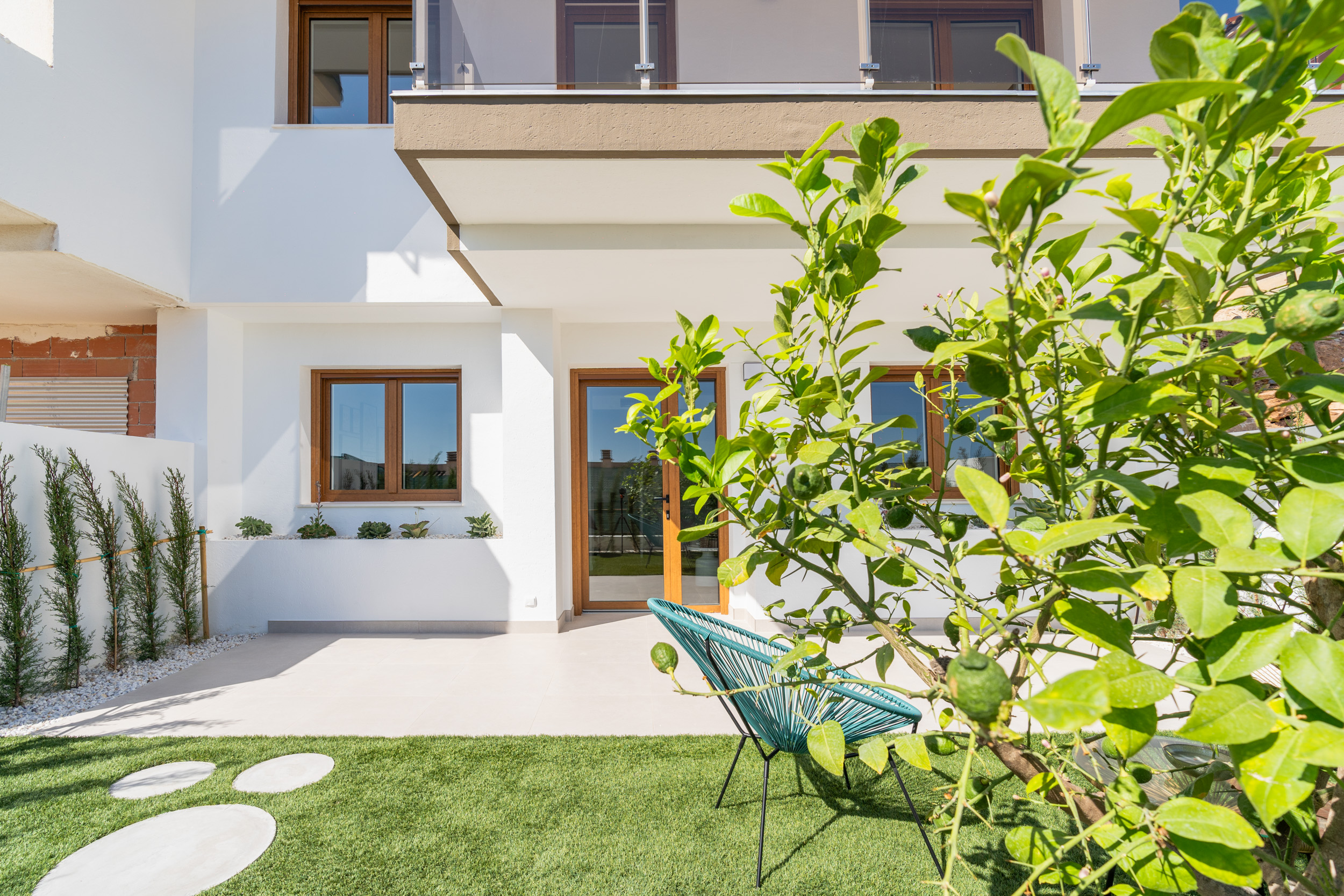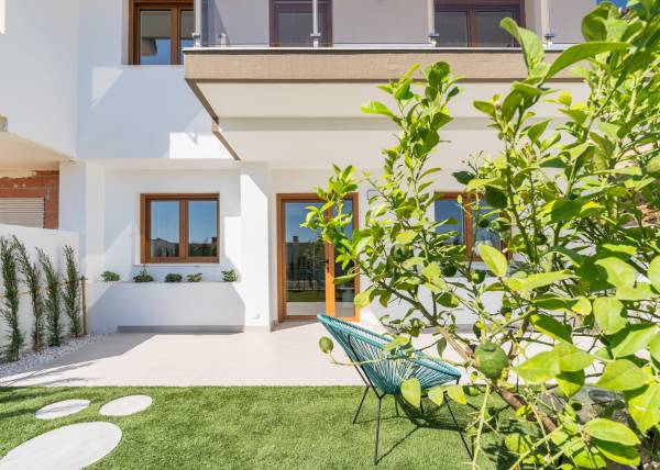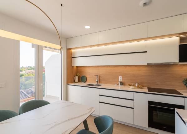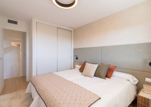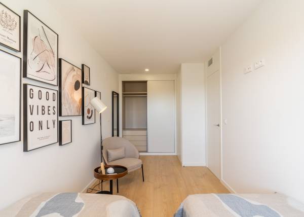 The interiors of the homes are carefully designed to offer maximum comfort and functionality. With options of 3 and 4 bedrooms and 3 bathrooms, each home adapts to the needs of modern families. Wooden floors add warmth and elegance, while air conditioning ensures a pleasant environment year-round. The kitchens are equipped with high-quality appliances, and built-in wardrobes offer efficient and discreet storage. The layout includes a private garage, ensuring convenience and security for residents.