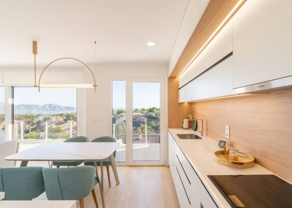 Located in the charming town of La Nucia, this exclusive collection of 28 properties offers a unique residential setting with sea views. The offer includes Detached, semi-detached, and terraced homes, adapting to various family needs and lifestyles. Each property has been designed to maximize comfort and functionality, providing an ideal home in a prime location. The proximity to the sea and panoramic views ensure a tranquil and relaxing environment, perfect for enjoying the Mediterranean climate.