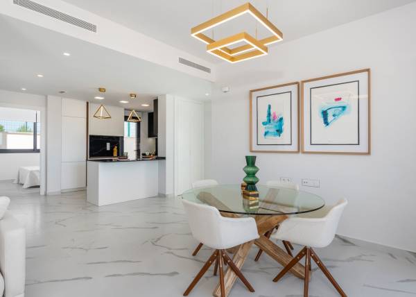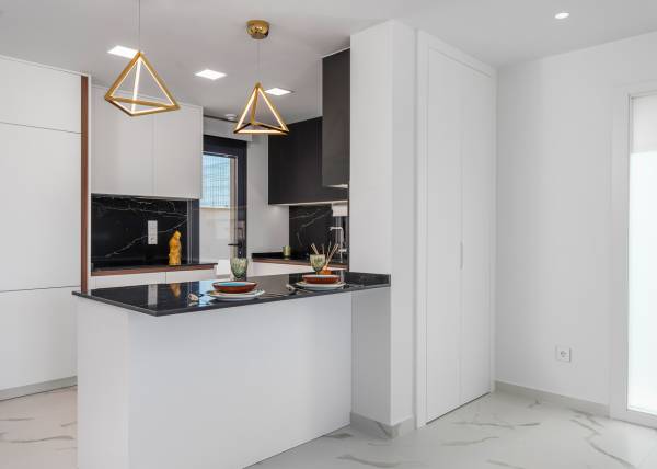 Located in the charming town of San Miguel de Salinas, this exclusive residential complex offers a selection of 8 bungalows, divided between high-bungalows and low-bungalows. The location is ideal for those seeking a tranquil environment without being too far from urban amenities. San Miguel de Salinas is known for its pleasant climate and proximity to the coast, making it a perfect place to enjoy Mediterranean life. Additionally, the nearest airport is just 26 kilometers away, facilitating access for frequent travelers.
