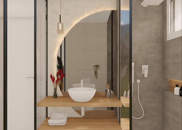The homes are equipped with features that ensure maximum comfort and functionality. The apartments, ground floors, and penthouses offer 2 and 3-bedroom options, all with 2 bathrooms, ensuring ample space for families or couples. The interiors feature built-in wardrobes, optimizing storage and maintaining a clean and orderly design. Ceramic and parquet floors add a touch of elegance and warmth to the spaces. Additionally, the properties include a garage, adding an extra level of convenience and security for residents. The interior design is intended to offer a cozy and modern environment.