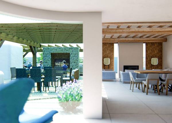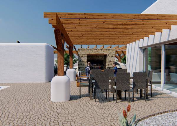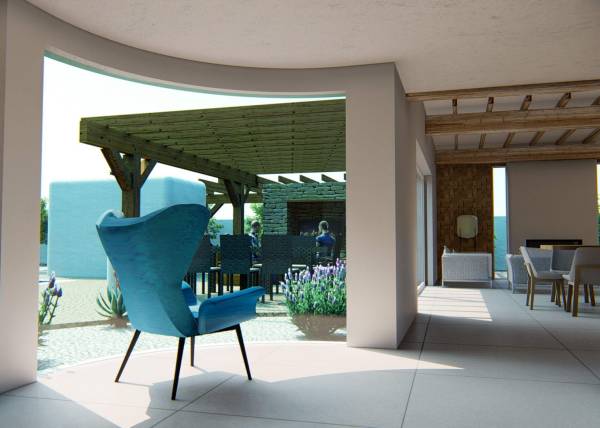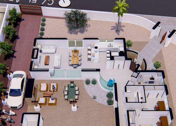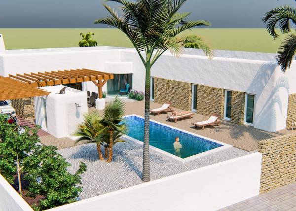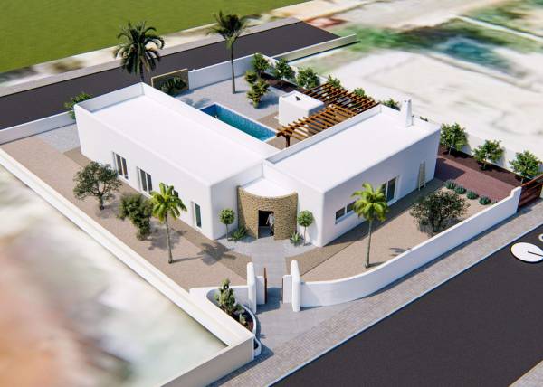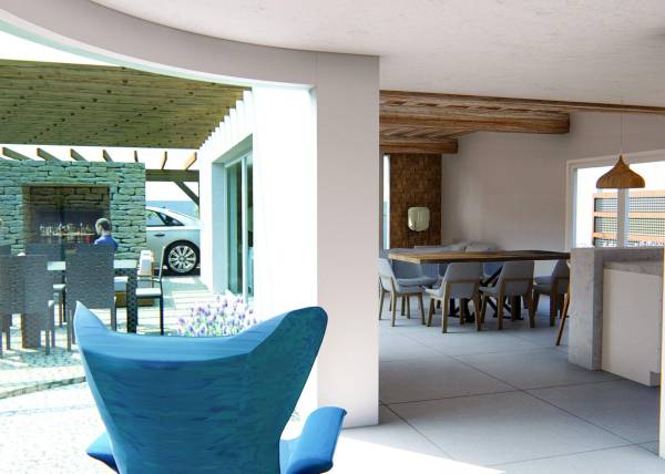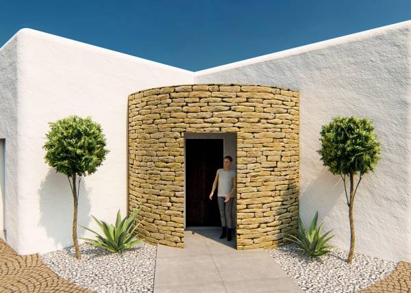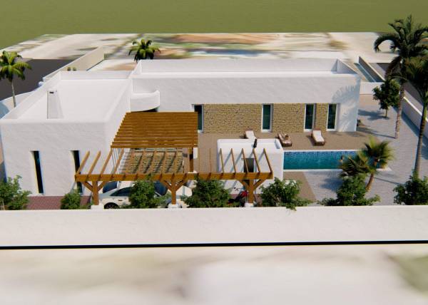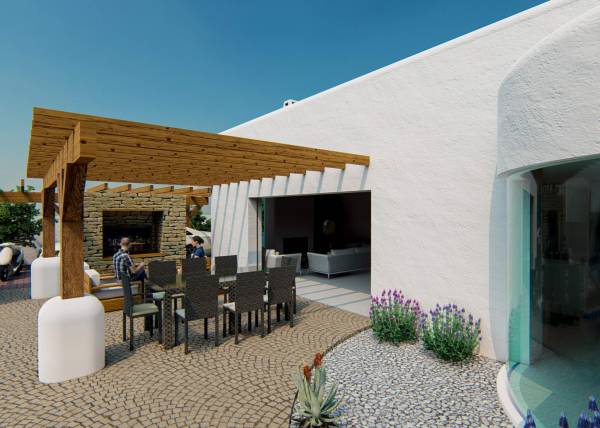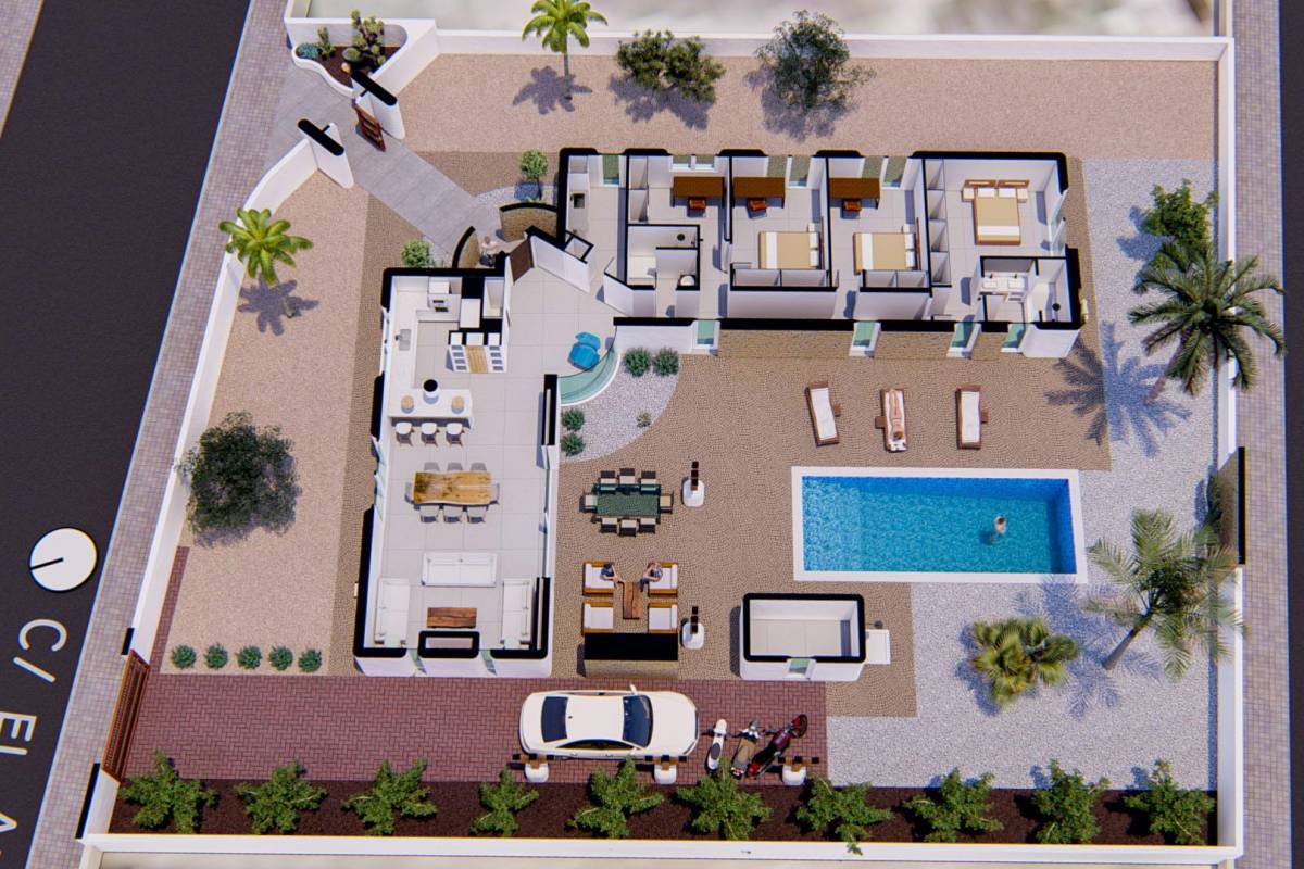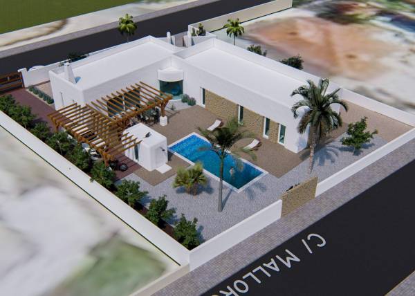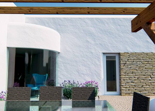 The interior of the villa is designed with attention to detail, offering comfort and style. It features three bedrooms, perfect for accommodating the whole family, and two well-equipped bathrooms. The ceramic floors add a modern touch and are easy to maintain. The property is equipped with air conditioning, ensuring a pleasant environment throughout the year. Appliances are included, making daily life easier. Electric blinds and the video intercom add an extra level of comfort and security. Built-in wardrobes offer ample storage space, keeping the home organized and clutter-free.