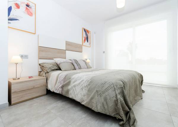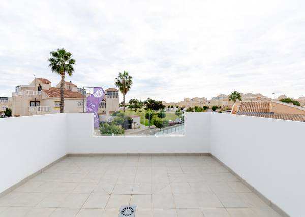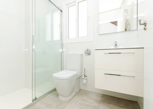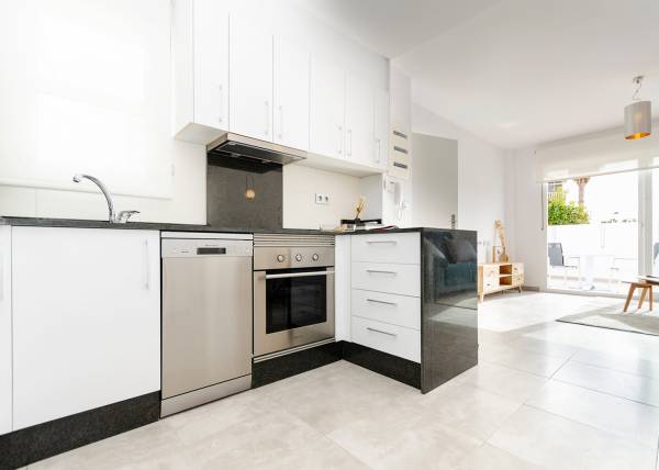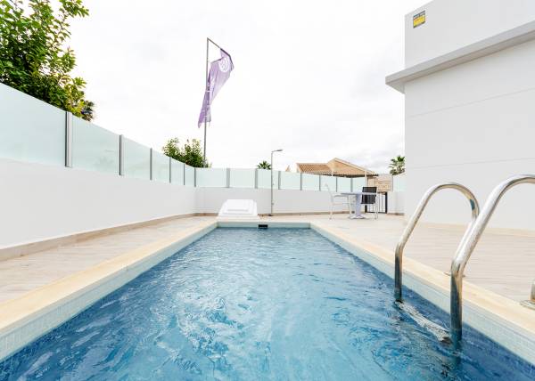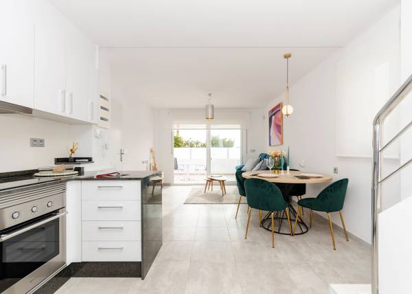 The exteriors of these townhouses in Torrevieja are designed to maximize enjoyment of the Mediterranean climate. Each home features a private terrace, perfect for relaxing outdoors or enjoying family meals. Additionally, there is the option to include a solarium, ideal for those who want additional space for sunbathing or creating a personalized relaxation area. The presence of a private pool in each townhouse adds a touch of luxury and exclusivity, allowing you to cool off on the hottest days without leaving home. The electric shutters installed on the exterior windows offer convenience and security, allowing easy adjustment of light entry.