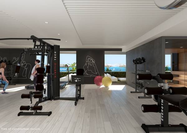The common areas of this residential complex in La Manga are designed to promote an active and social lifestyle. Residents can enjoy spacious garden areas, perfect for walking or relaxing outdoors. The community pool offers a refreshing space for swimming and socializing, while the community gym is equipped to meet the needs of fitness enthusiasts. These facilities are designed to complement the living experience in this exclusive coastal environment, providing entertainment and wellness options to all residents.