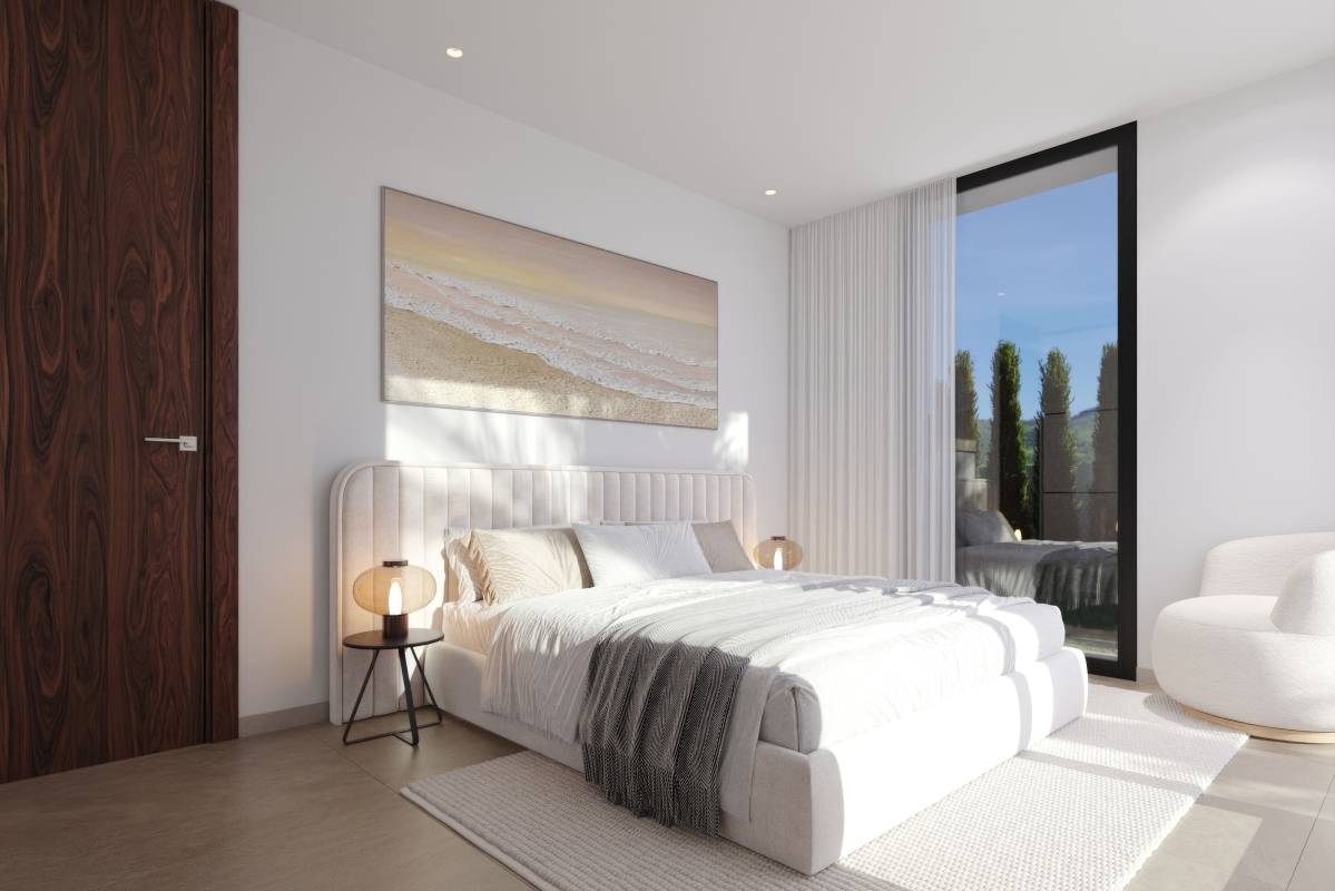 The interior of these homes has been designed with comfort and functionality in mind. Each property features three bedrooms and three bathrooms, providing a spacious and comfortable area for the whole family. Interior features include modern appliances, home automation for efficient home control, and electric blinds that facilitate natural light management. Built-in wardrobes offer practical and elegant storage solutions. Additionally, the video intercom adds an extra level of security and convenience, allowing residents to control access to their home easily and effectively.