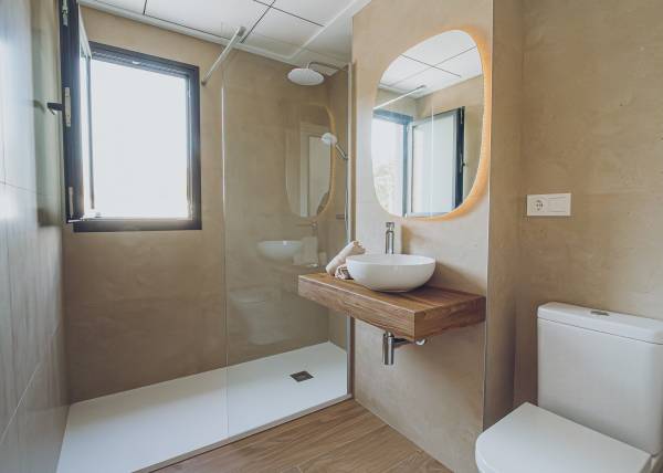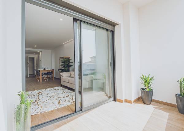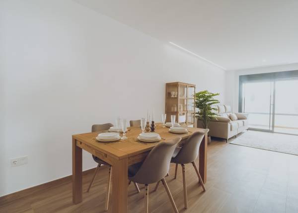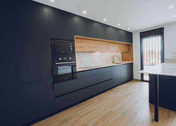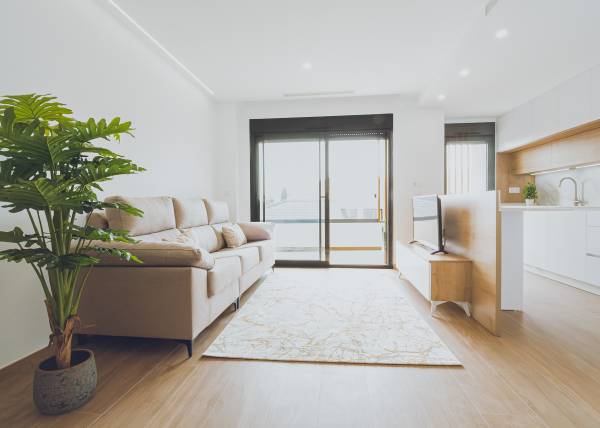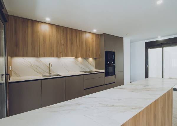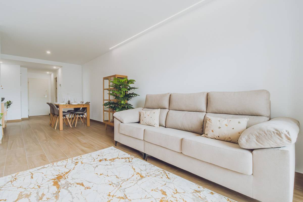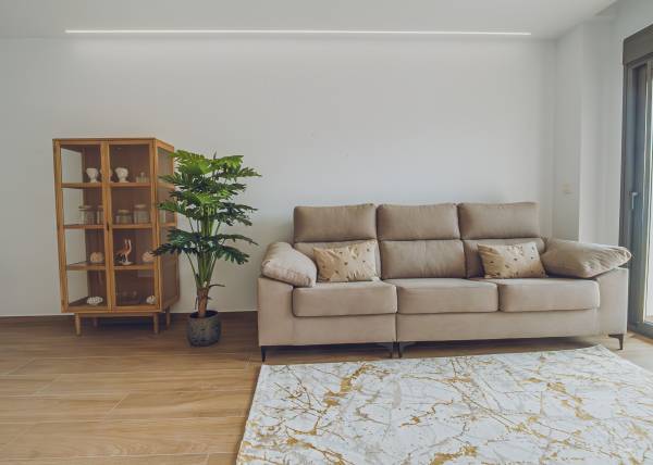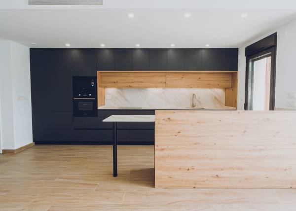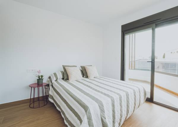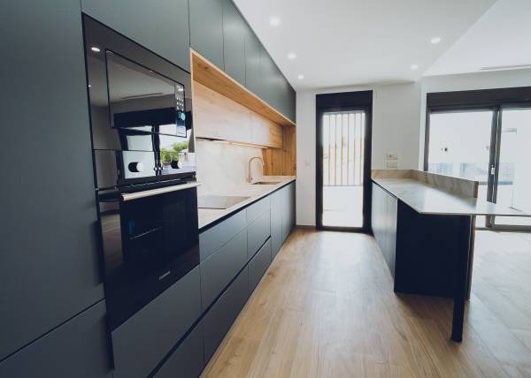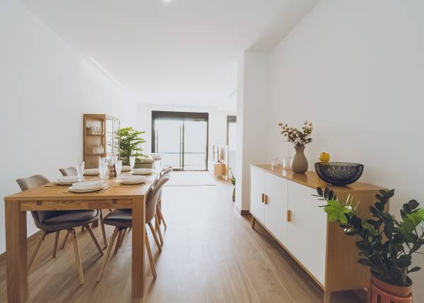 The interiors of the apartments and penthouses in Redován are designed to offer a modern and functional space. With three bedrooms and two bathrooms, these homes are perfect for families or those seeking additional space. Electric blinds and pre-installed air conditioning ensure a comfortable environment year-round. Built-in wardrobes provide practical storage solutions, while integrated home automation allows efficient control of home functions, adapting to the needs of modern living.