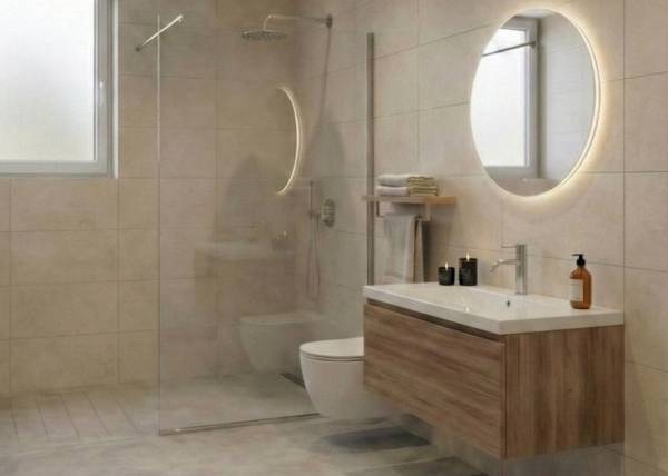 The interior of the bungalows is designed with a focus on quality and comfort. Porcelain tile floors add a touch of elegance and are easy to maintain, ideal for modern living. The kitchen is equipped with appliances, making daily life easier from day one. Built-in wardrobes in the bedrooms offer ample storage space, keeping things tidy and organized. Additionally, the pre-installation of air conditioning ensures the home stays cool during the warmer months, providing a comfortable environment at all times.