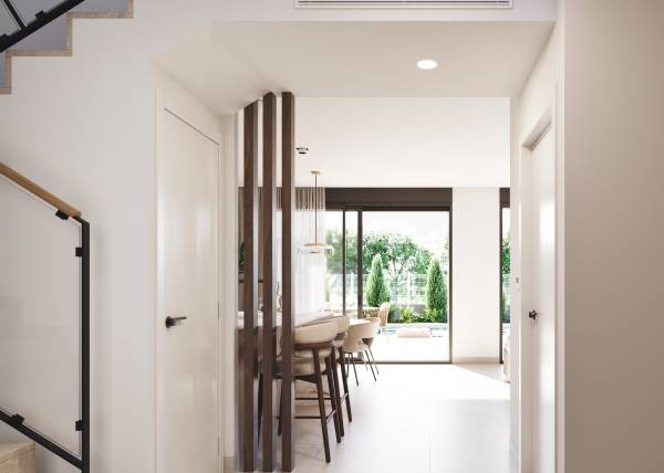 Located in the charming town of San Javier, this exclusive collection of detached villas offers a prime setting with sea views. With only three properties available, each has been designed to provide maximum comfort and privacy. The proximity to the coast, just one kilometer away, allows you to enjoy the sea breeze and stunning landscapes from the comfort of your home. Additionally, the airport is 38 kilometers away, facilitating access for frequent travelers.