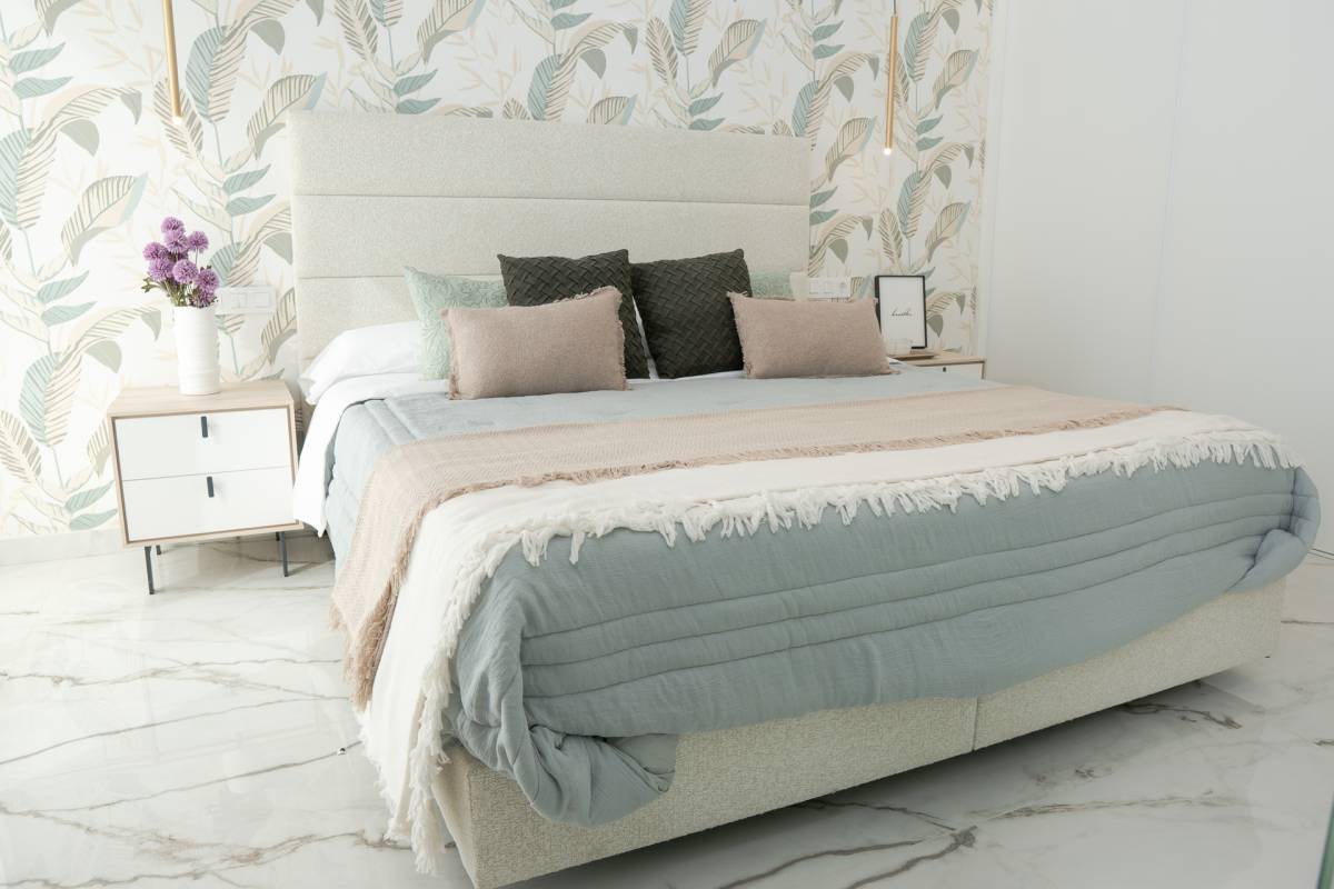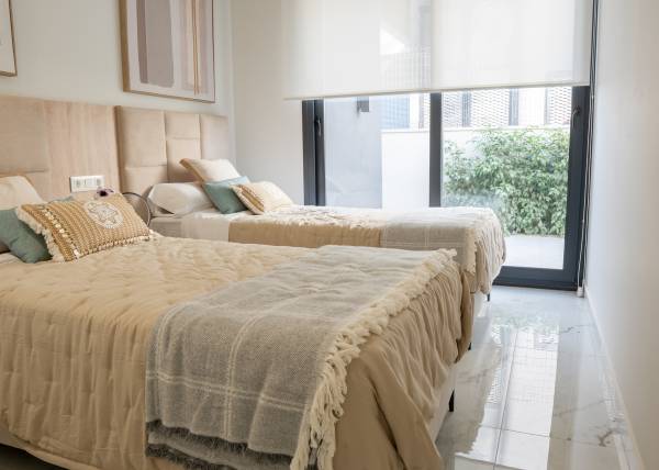 The homes feature a private garden, perfect for enjoying the Mediterranean climate and hosting outdoor gatherings. Additionally, each property has a private pool, ideal for cooling off during warm summer days. The terrace is another attractive outdoor feature, offering additional space to relax or enjoy an al fresco dinner. The solarium, present in each home, provides a perfect spot for sunbathing and enjoying panoramic views of the area.