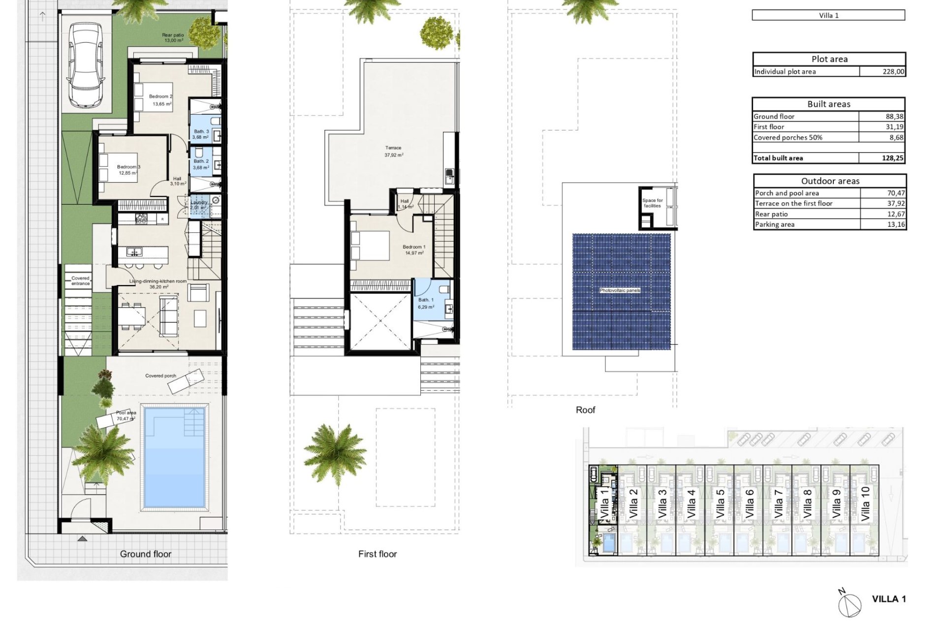 The interior of these detached homes is carefully designed to offer comfort and style. With three bedrooms and three bathrooms, each property is equipped to meet the needs of a modern family. Built-in wardrobes provide ample storage space, while the pre-installation of air conditioning ensures a comfortable environment year-round. The inclusion of modern appliances in the kitchen facilitates daily life, making these homes a practical and welcoming place to live.
