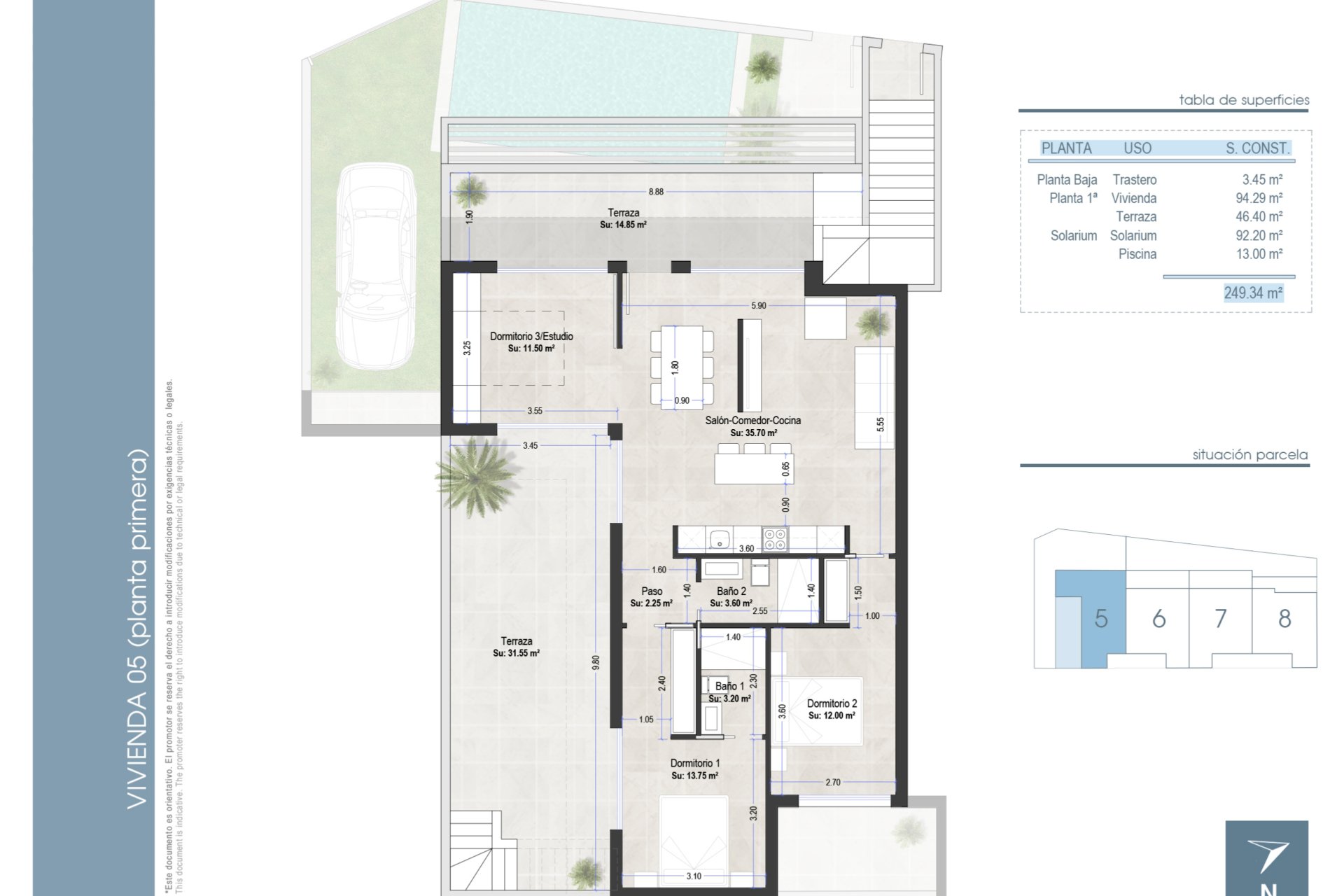 The exteriors of these properties have been designed to offer maximum enjoyment of the Mediterranean climate. Each bungalow features its own private garden, an ideal space for relaxation or outdoor activities. The spacious terraces provide a perfect spot for al fresco dining or simply enjoying the views. Additionally, the inclusion of a solarium in each property allows residents to make the most of the sun year-round. The presence of a pergola adds a touch of elegance and functionality, providing shade and additional space for entertainment. For those looking to cool off, each bungalow has a private pool, turning the home into a personal oasis.