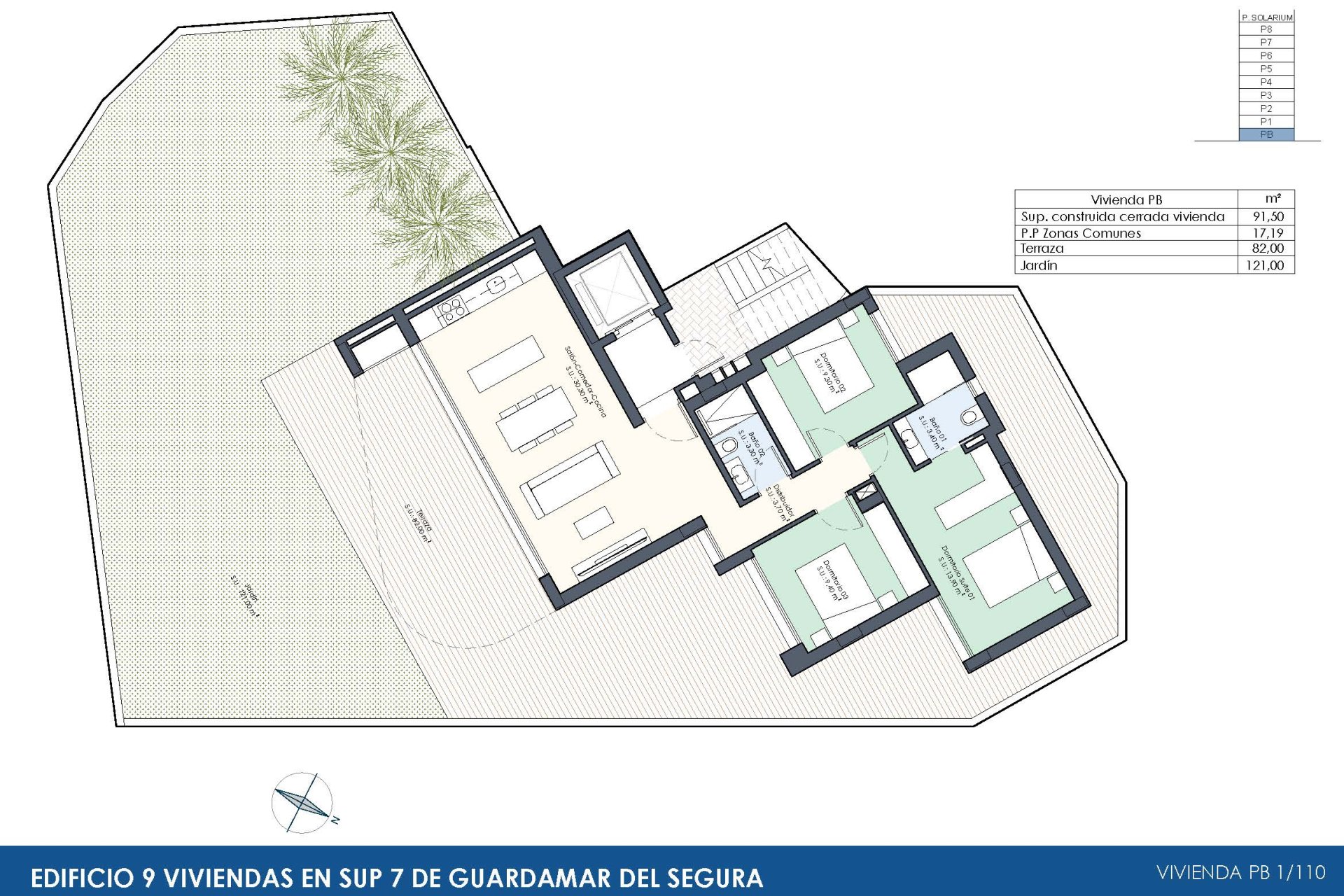 Located in the charming town of Guardamar del Segura, this residential complex offers an exclusive selection of nine properties, including apartments, ground floors, and penthouses. Each home is designed to provide maximum comfort and functionality, with a layout that includes three bedrooms and two bathrooms. The location is ideal for those looking to enjoy proximity to the sea, as it is just one kilometer from the coast, allowing for enjoyment of the beaches and Mediterranean climate. Additionally, the airport is only 30 kilometers away, facilitating access for residents and visitors.