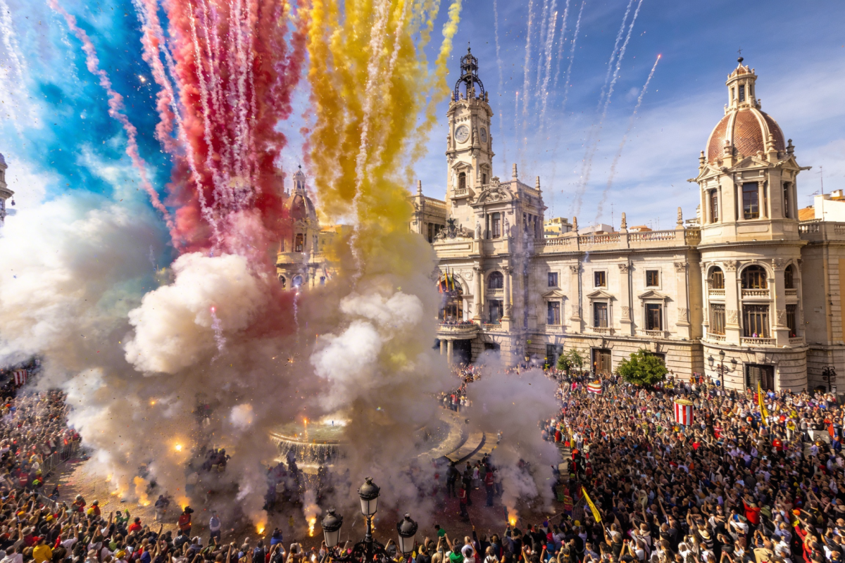 Van 1 tot en met 19 maart 2026 vindt dagelijks om 14:00 uur de beroemde Mascletà plaats op de Plaza del Ayuntamiento.
