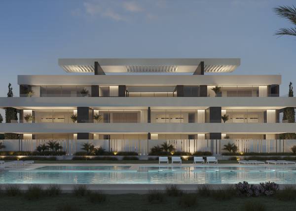 De buitenruimtes van deze woningen zijn ontworpen om optimaal te genieten van het mediterrane klimaat. Elke woning heeft privéterrassen, perfect om buiten te ontspannen of te genieten van een maaltijd in de open lucht. Bovendien bieden sommige eenheden solariums, die extra ruimte bieden voor ontspanning en recreatie. De toevoeging van pergola's voegt een vleugje elegantie en functionaliteit toe, waardoor u van de buitenruimte kunt genieten met schaduw en stijl. De woningen zijn uitgerust met jacuzzi's, wat een extra luxe biedt voor persoonlijke ontspanning en welzijn.