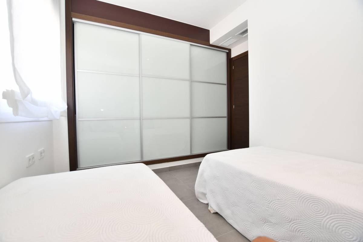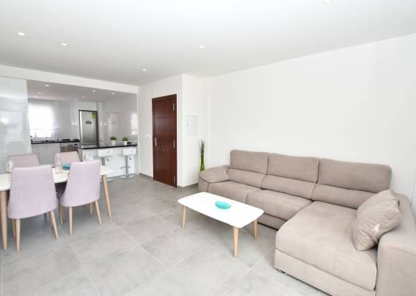 Het interieur van de woningen is ontworpen om comfort en moderniteit te bieden. De porseleinen tegelvloeren geven een vleugje elegantie en zijn gemakkelijk te onderhouden. De woningen zijn uitgerust met ingebouwde kasten, die veel opbergruimte bieden. De pre-installatie van airconditioning zorgt ervoor dat het binnenklimaat altijd aangenaam is, terwijl de video-intercom een extra niveau van veiligheid en comfort toevoegt. De indeling van de woningen, met twee slaapkamers en twee badkamers, is ontworpen om een functionele en gezellige ruimte te bieden, die aan de behoeften van de bewoners voldoet.