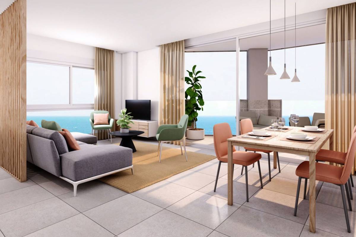 Het interieur van de woningen is zorgvuldig ontworpen om maximaal comfort en functionaliteit te bieden. De appartementen en penthouses zijn beschikbaar in configuraties van 1, 2 en 3 slaapkamers, met 1 of 2 badkamers, aangepast aan de behoeften van elke bewoner. De keramische vloeren geven een moderne uitstraling en zijn gemakkelijk te onderhouden. De installatie van airconditioning en de extra pre-installatie zorgen voor een aangename sfeer gedurende het hele jaar. Elektrische rolluiken en de video-intercom voegen een extra niveau van comfort en veiligheid toe. Ingebouwde kasten optimaliseren de opslagruimte, waardoor orde en organisatie in huis behouden blijven.
