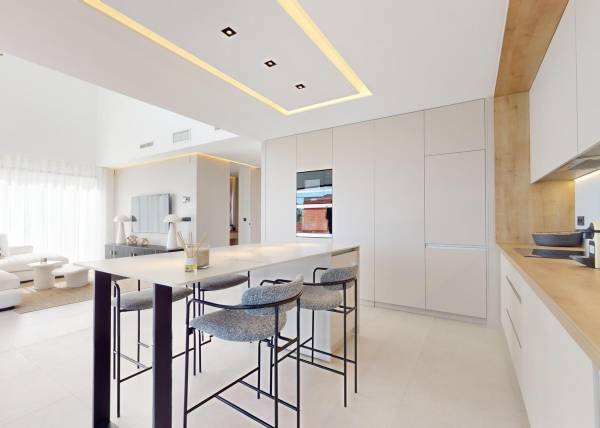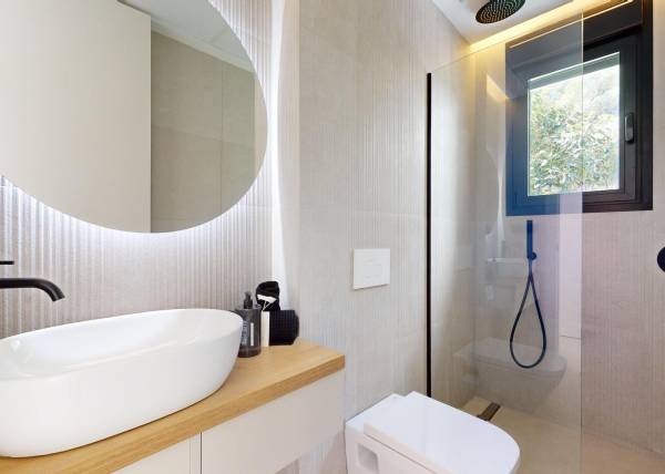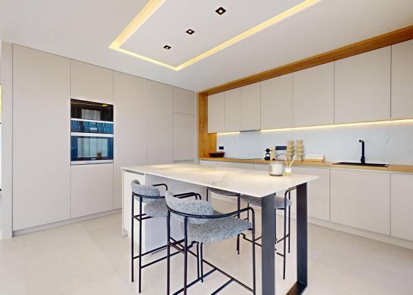 Het interieur van deze vrijstaande woningen in Polop is uitgerust met hoogwaardige kenmerken die maximaal comfort en gemak garanderen. Elke woning beschikt over drie slaapkamers en drie badkamers, wat een ruime en functionele ruimte biedt voor het hele gezin. De keramische vloer voegt een vleugje elegantie toe en is gemakkelijk te onderhouden. De woningen zijn voorzien van airconditioning en vloerverwarming, wat het hele jaar door een comfortabele omgeving verzekert. De toevoeging van moderne apparaten, elektrische rolluiken en een geavanceerd domoticasysteem vergemakkelijkt het dagelijks leven. Ingebouwde kasten bieden efficiënte opslag, terwijl de video-intercom een extra beveiligingsniveau toevoegt.