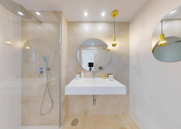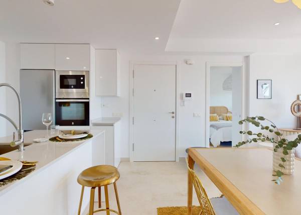 Het interieur van de woningen is zorgvuldig ontworpen om comfort en functionaliteit te bieden. De keramische vloeren geven een moderne uitstraling en zijn gemakkelijk te onderhouden. Alle woningen zijn uitgerust met airconditioning, wat het hele jaar door een aangename sfeer garandeert. De inbegrepen apparaten vergemakkelijken het dagelijks leven, terwijl de ingebouwde kasten efficiënte en elegante opslag bieden. De indeling van de woningen, met opties van 1 tot 4 slaapkamers en 1 tot 3 badkamers, maakt aanpassing aan verschillende levensstijlen en gezinsbehoeften mogelijk.