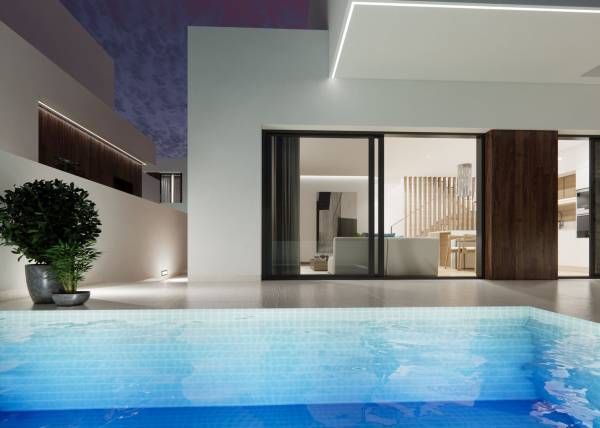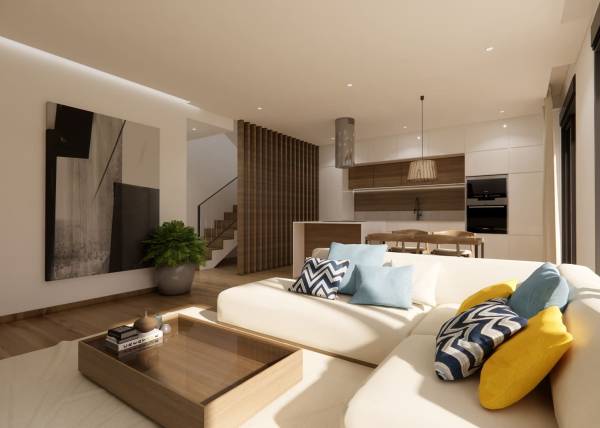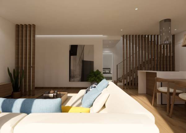 De buitenruimtes van deze geschakelde woningen zijn zorgvuldig ontworpen om een plek van ontspanning en buitenplezier te bieden. Elke woning heeft een privéterras, perfect om buiten te eten of gewoon te ontspannen in de zon. Bovendien voegt het privézwembad in elke woning een vleugje luxe en exclusiviteit toe, waardoor je op warme zomerdagen kunt afkoelen zonder het huis te verlaten. De buitenarchitectuur combineert moderniteit en functionaliteit, en integreert harmonieus met de natuurlijke omgeving van Dolores.