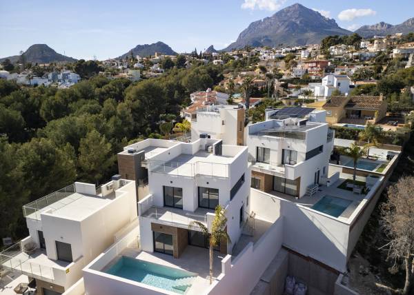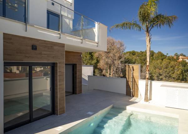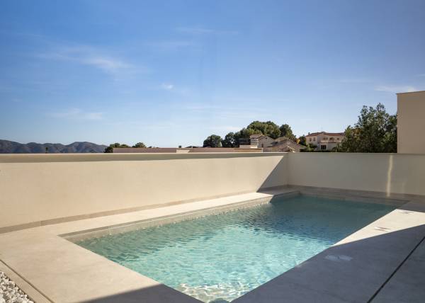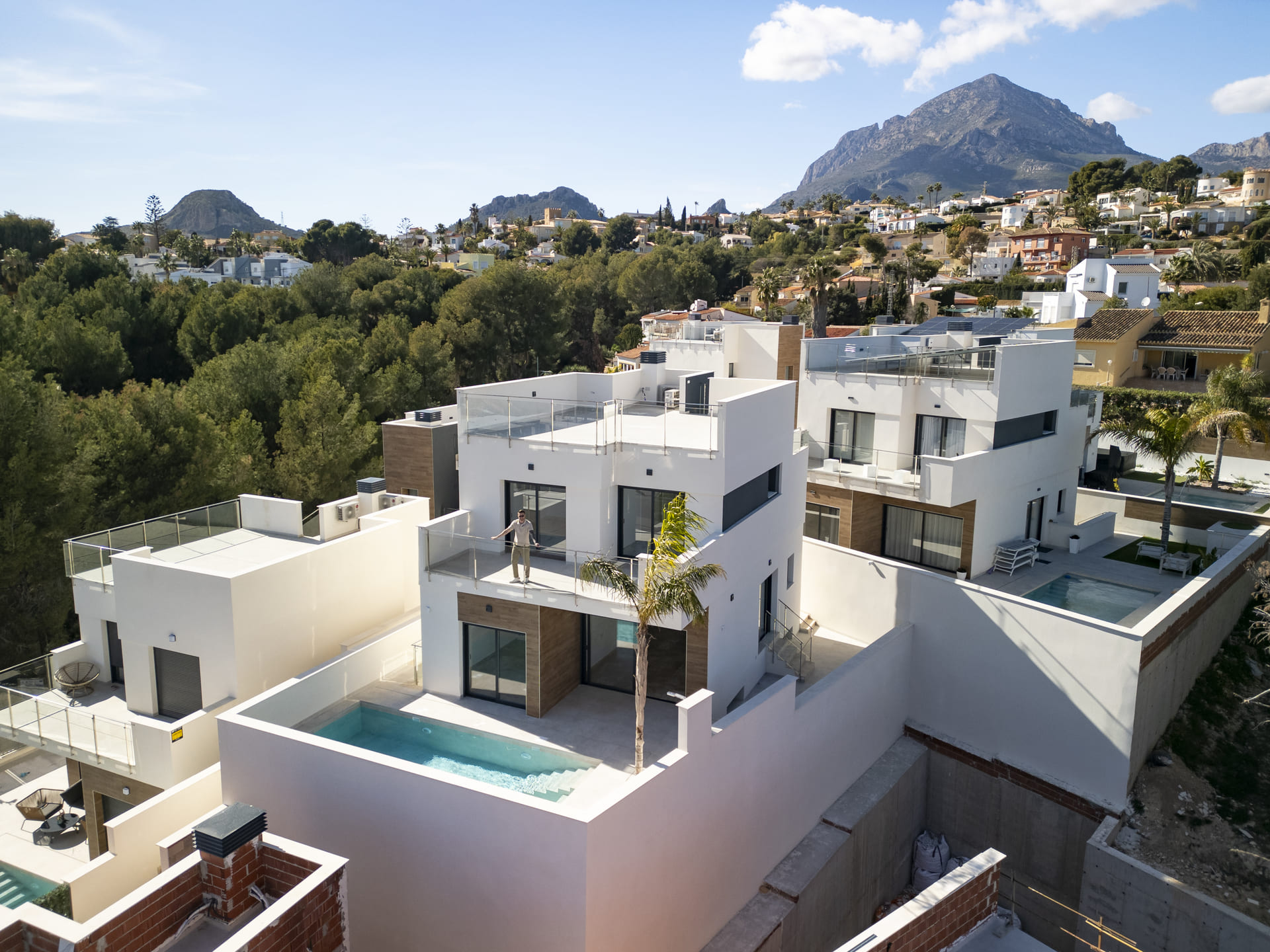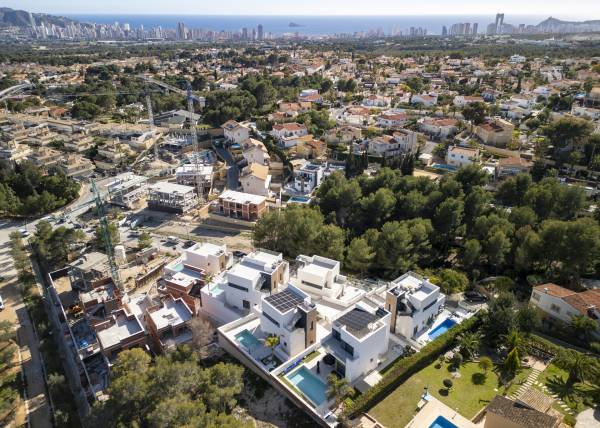 De buitenruimtes van deze onafhankelijke woningen in Coloma zijn ontworpen om optimaal te genieten van het mediterrane klimaat. Elke woning heeft een privétuin, ideaal voor buitenactiviteiten en ontspanningsmomenten. Bovendien beschikken de woningen over een terras en een solarium, wat meerdere ruimtes biedt om van de zon en het uitzicht te genieten. De toevoeging van een privézwembad in elke woning voegt een vleugje luxe en exclusiviteit toe, waardoor de bewoners kunnen genieten van een verfrissende duik in de privacy van hun eigen huis. De aanwezigheid van een oplaadpunt voor elektrische auto's onderstreept de toewijding aan duurzaamheid en moderniteit.