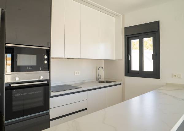 Het interieur van deze onafhankelijke woningen in Coloma is ontworpen om maximaal comfort en functionaliteit te bieden. De keramische vloeren geven een elegante uitstraling en zijn gemakkelijk te onderhouden. De woningen zijn uitgerust met moderne apparatuur, waardoor de keuken een praktische en efficiënte ruimte is. Ingebouwde kasten bieden optimale opslag, waardoor de ruimtes netjes en opgeruimd blijven. De pre-installatie van airconditioning zorgt ervoor dat de bewoners het hele jaar door van een aangename omgeving kunnen genieten. Bovendien voegt de video-intercom een extra niveau van veiligheid en gemak toe.