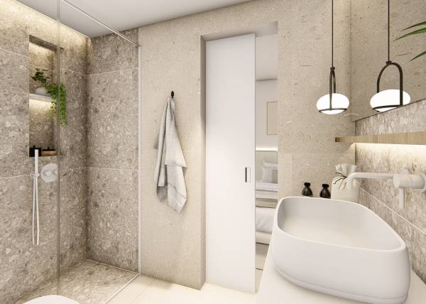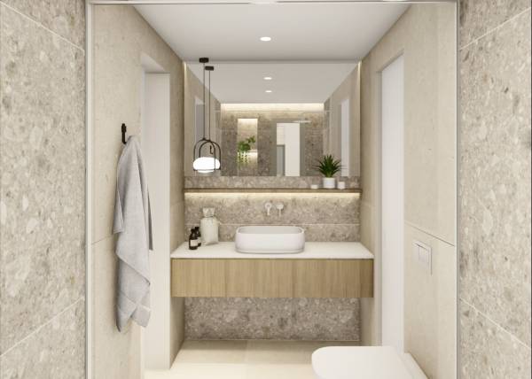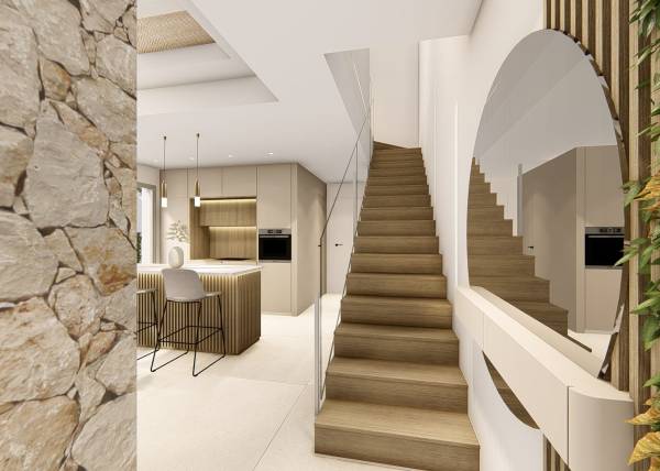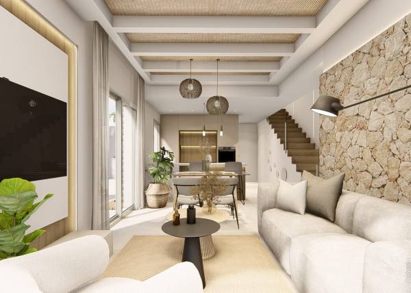 Het interieur van de geschakelde woningen in Ciudad Quesada is ontworpen om comfort en functionaliteit te maximaliseren. Met opties van 3 slaapkamers en 2 of 3 badkamers passen deze woningen zich aan de behoeften van verschillende soorten gezinnen aan. De porseleinen tegelvloeren geven een vleugje elegantie en zijn gemakkelijk te onderhouden, wat ze ideaal maakt voor dagelijks gebruik. Ingebouwde kasten in de slaapkamers bieden veel opbergruimte, waardoor de orde en esthetiek van het huis behouden blijven. De indeling van de woningen is ontworpen om optimaal gebruik te maken van natuurlijk licht, waardoor lichte en gezellige omgevingen ontstaan die uitnodigen tot ontspanning en familiebijeenkomsten.