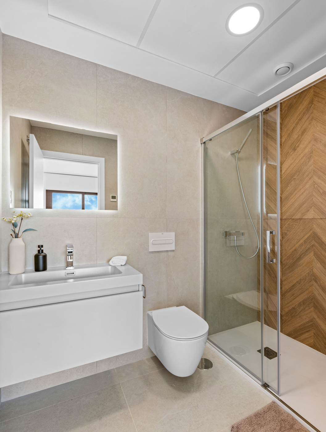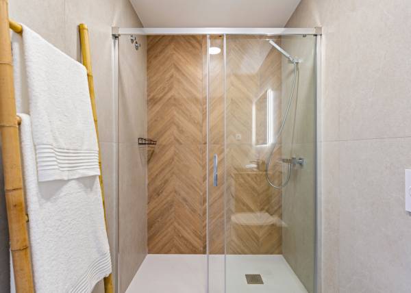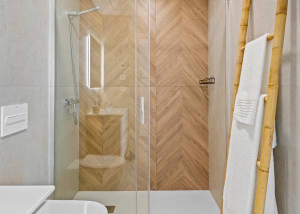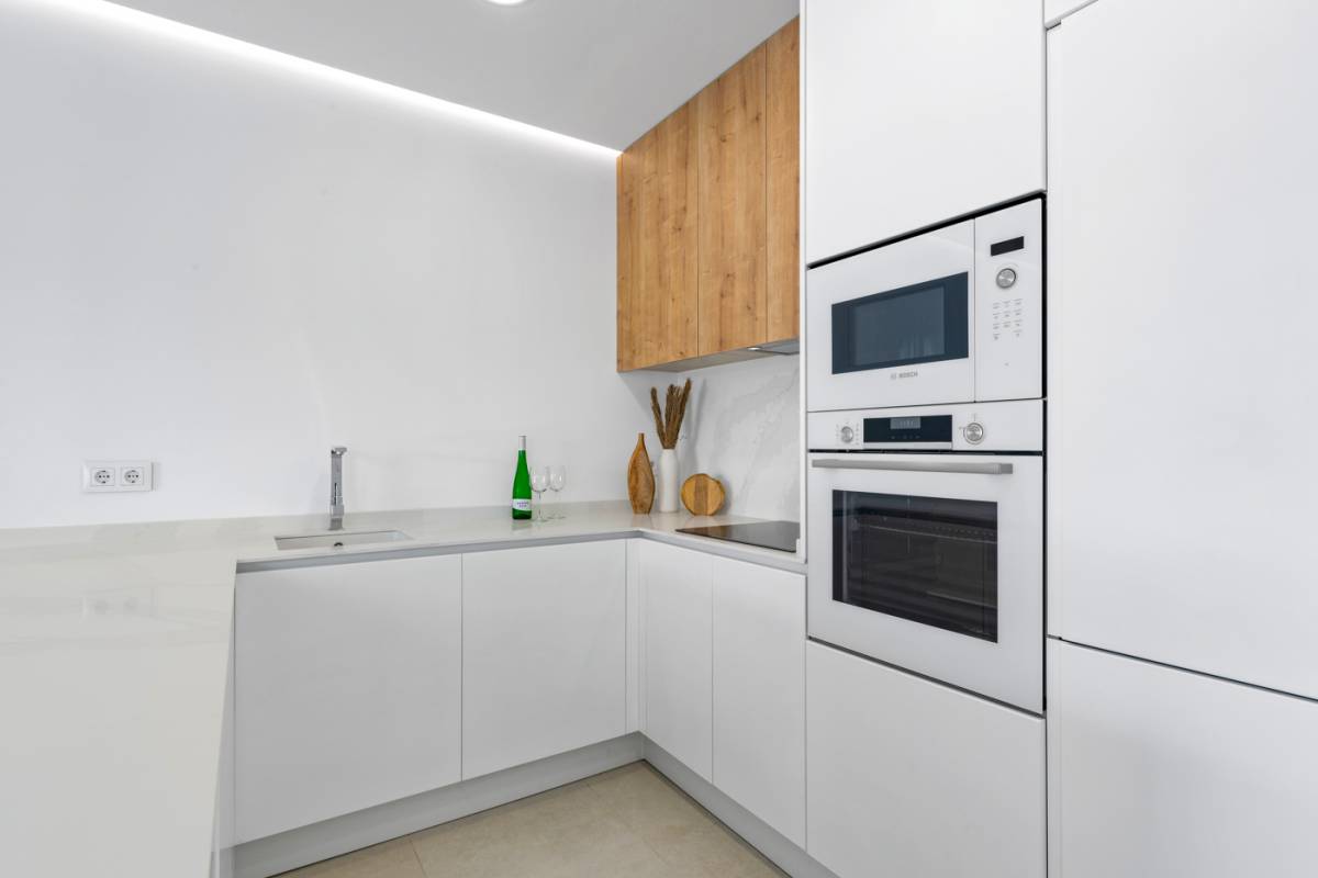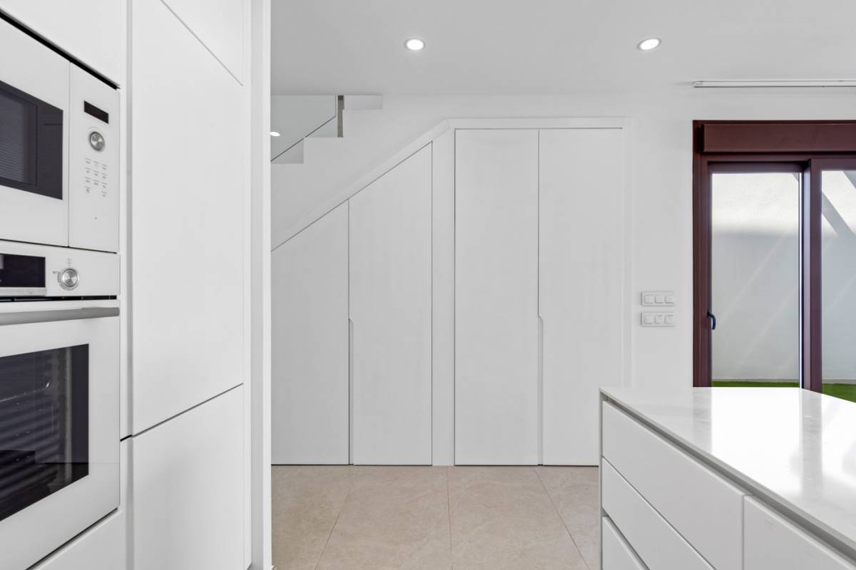 Het interieur van deze vrijstaande chalets is ontworpen om comfort en functionaliteit te bieden. Met drie slaapkamers en drie badkamers zijn de woningen ontworpen om te voldoen aan de behoeften van gezinnen of groepen die op zoek zijn naar ruimte en privacy. De ingebouwde kasten in de slaapkamers optimaliseren de opslag, terwijl ze orde en esthetiek behouden. De aanwezigheid van huishoudelijke apparaten in de keuken vergemakkelijkt het dagelijks leven, waardoor u vanaf dag één kunt genieten van een volledig uitgerust huis. Elk detail is overwogen om een gastvrije en moderne sfeer te bieden.
